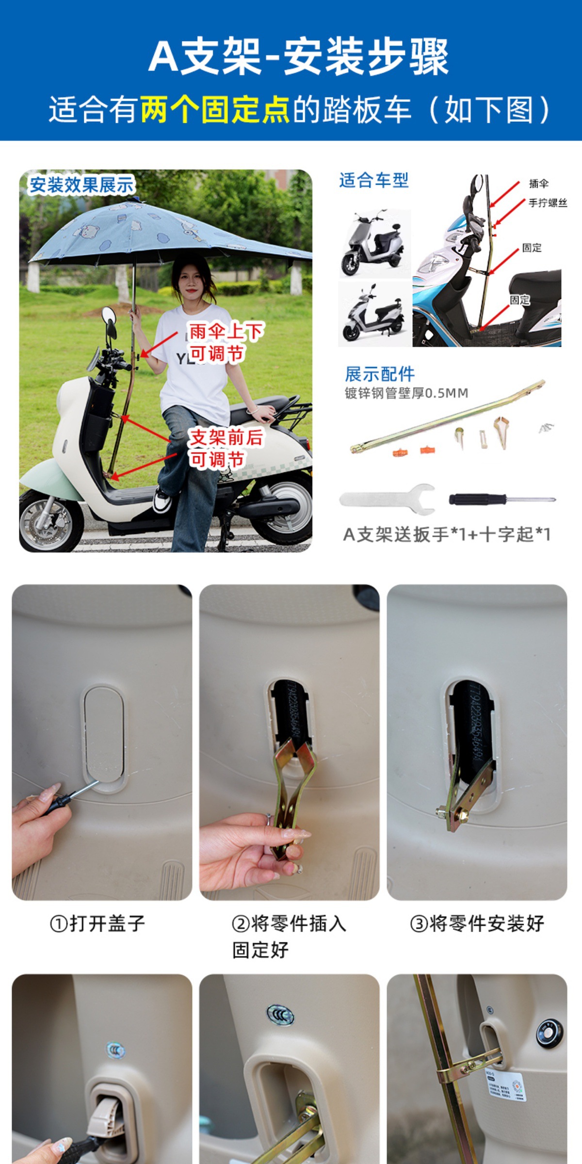 Зонт для электрического транспортного средства на вынос, мотоцикл, экспресс-доставка мотоциклом, специальный ветрозащитный, увеличенный и удлиненный зонт для водителя электрического мотоцикла, защита от дождя и солнца