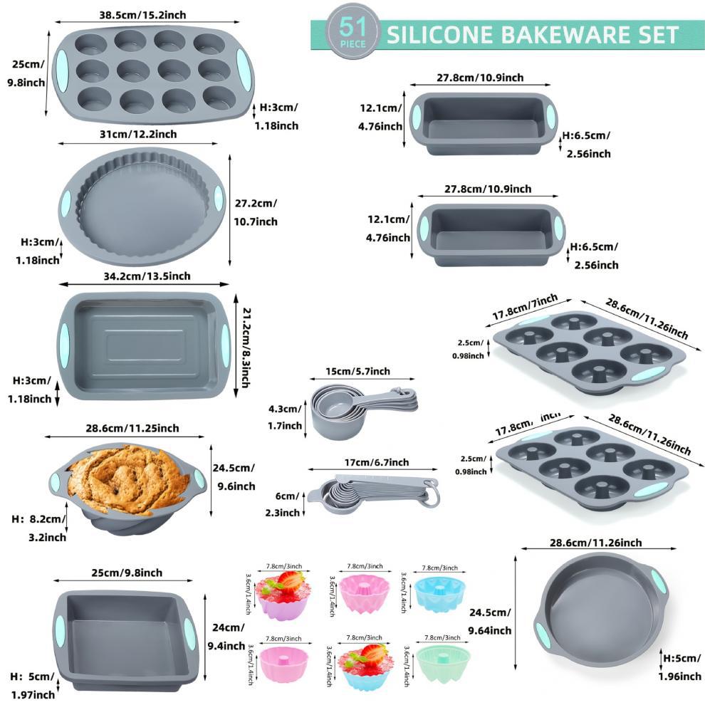 Новинка 2026 года, кросс-бордерный набор из 51 предмета для выпечки, антипригарные кухонные принадлежности 51/46 предметов, диатомит
