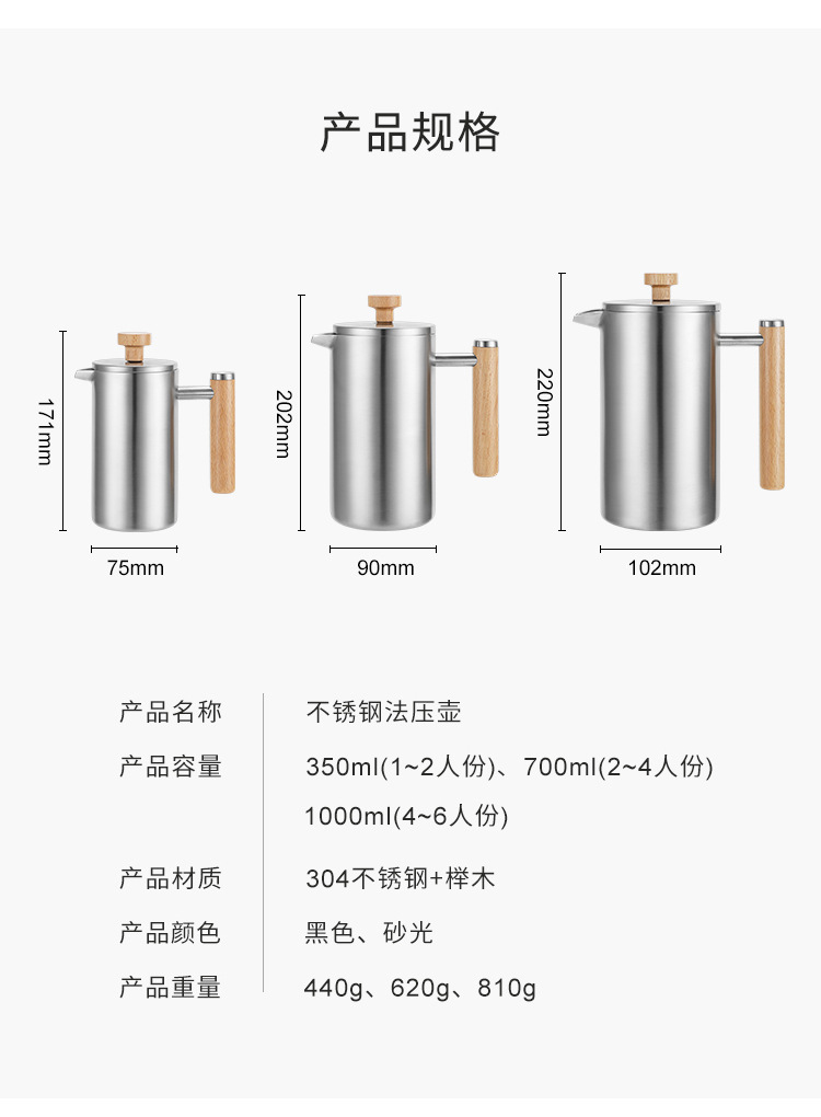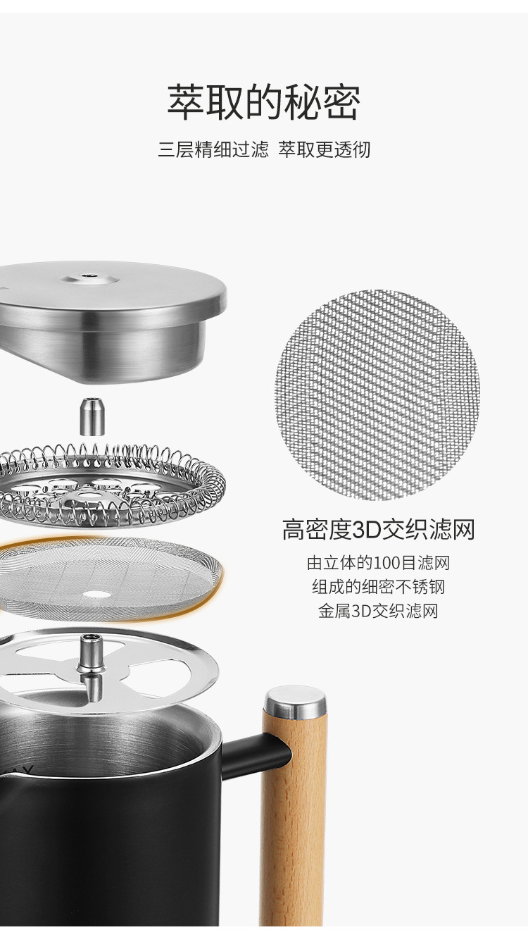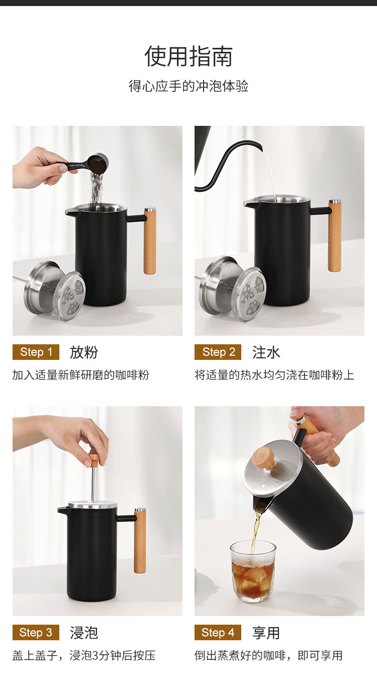 Френч-пресса из нержавеющей стали 304, набор для ручного заваривания кофе, двойной изолированный набор для чая