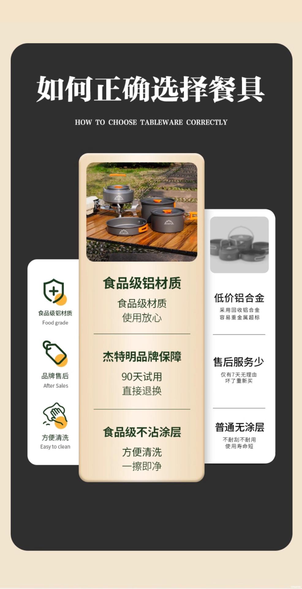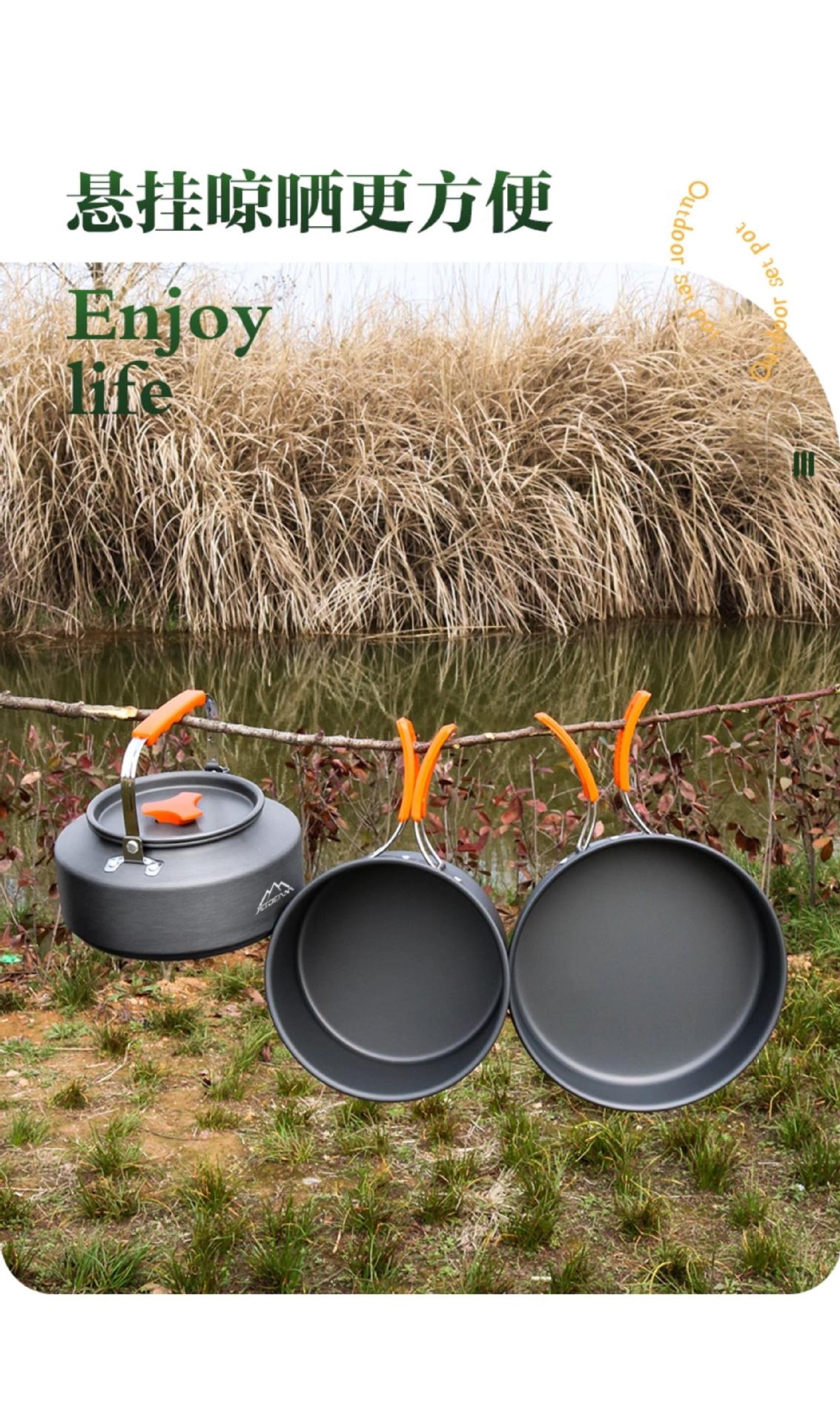 Набор посуды для кемпинга с анодированными алюминиевыми кастрюлями, легкий алюминиевый сплав