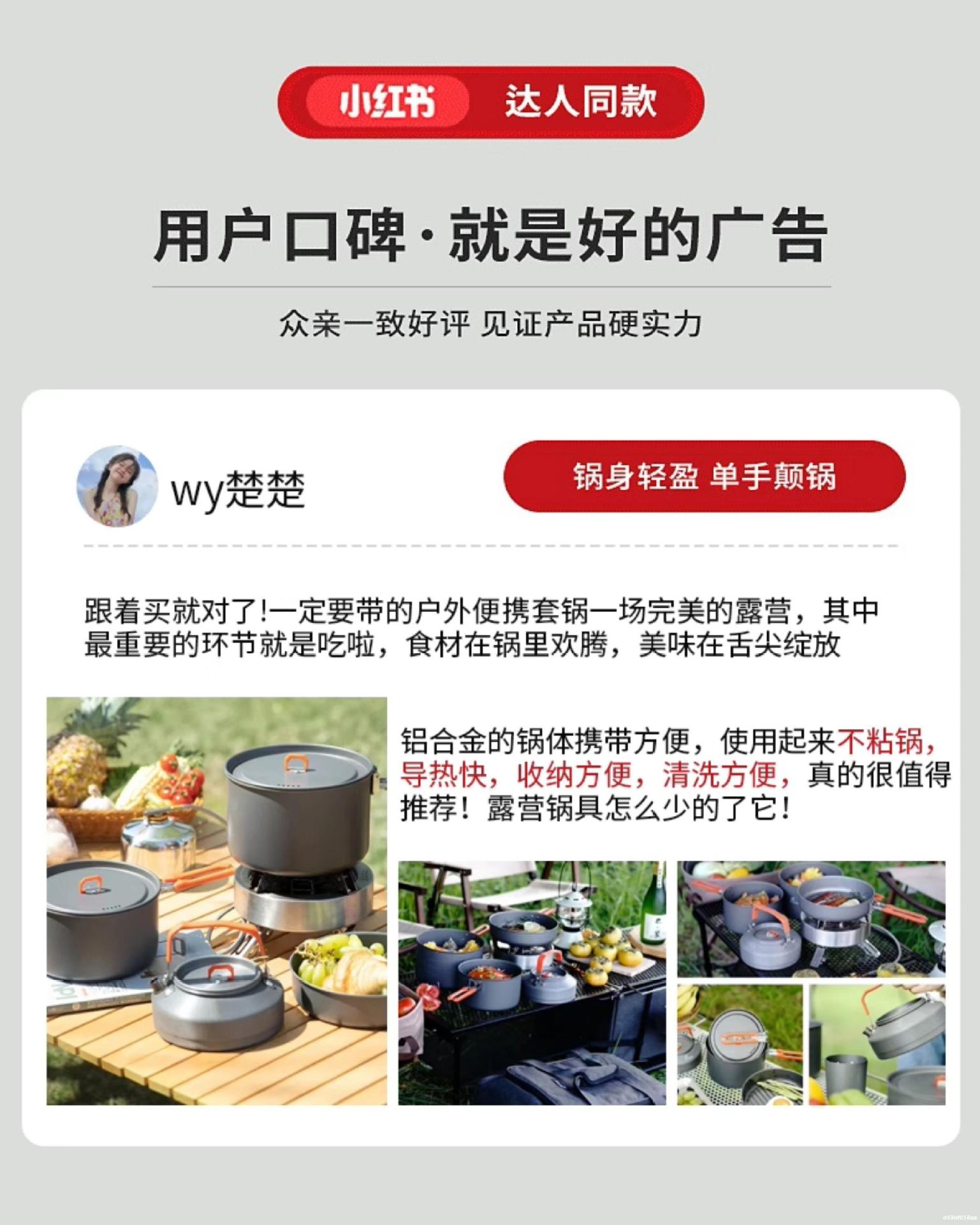 📦 | Complete camping set (large cooking pot + medium cooking pot + large frying pan + 1.1l kettle + accessories | ¥140.0 / ≈ 1 704 ₽ | 1000 | 6134455510201 | |