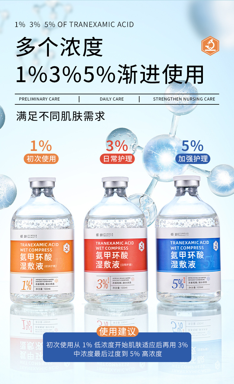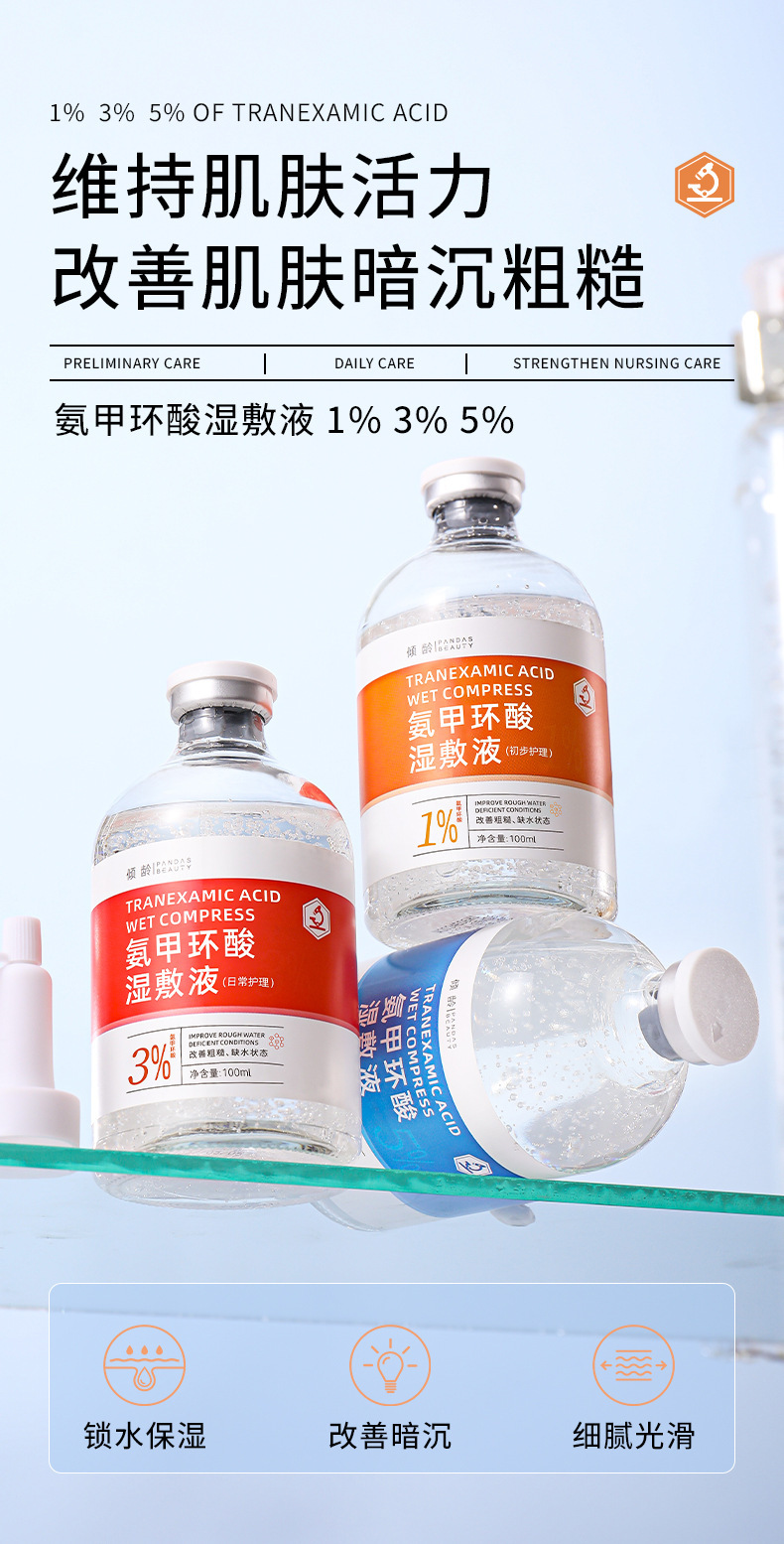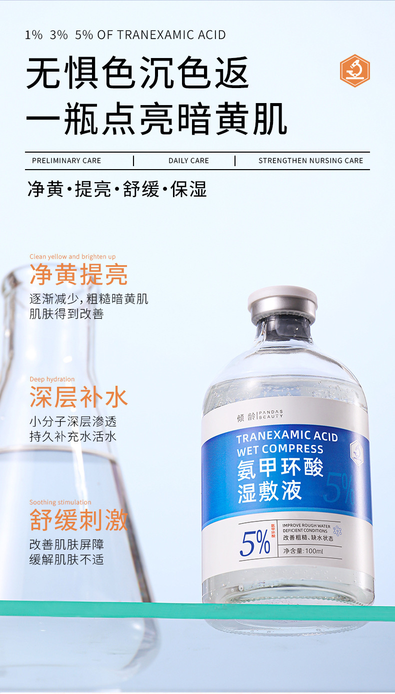 Qingling трансексамовая кислота влажный компресс жидкость 5% укрепляющая и увлажняющая, улучшает чувствительную кожу, покраснение, тусклость и осветляет кожу