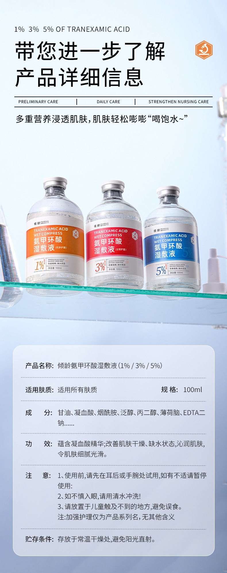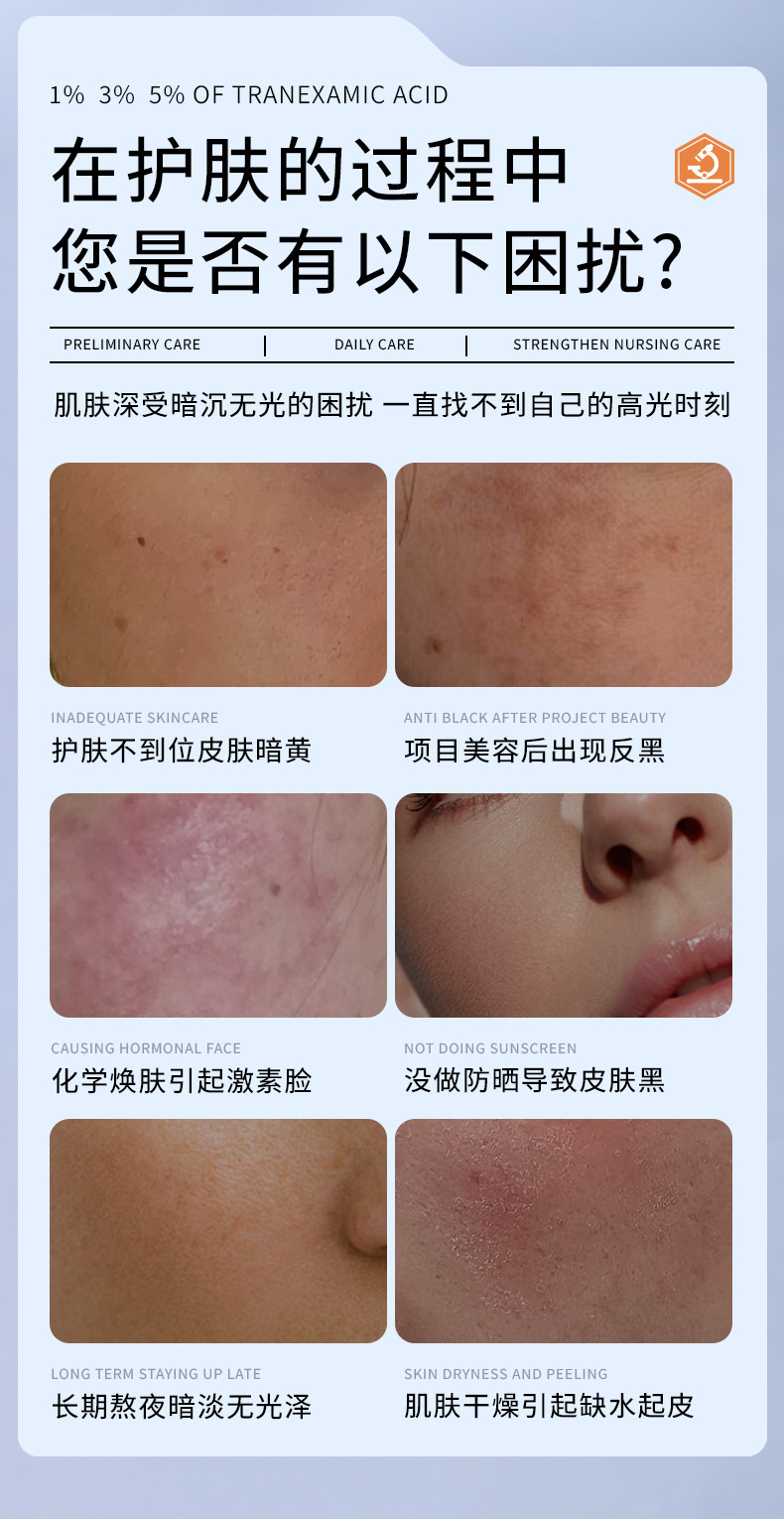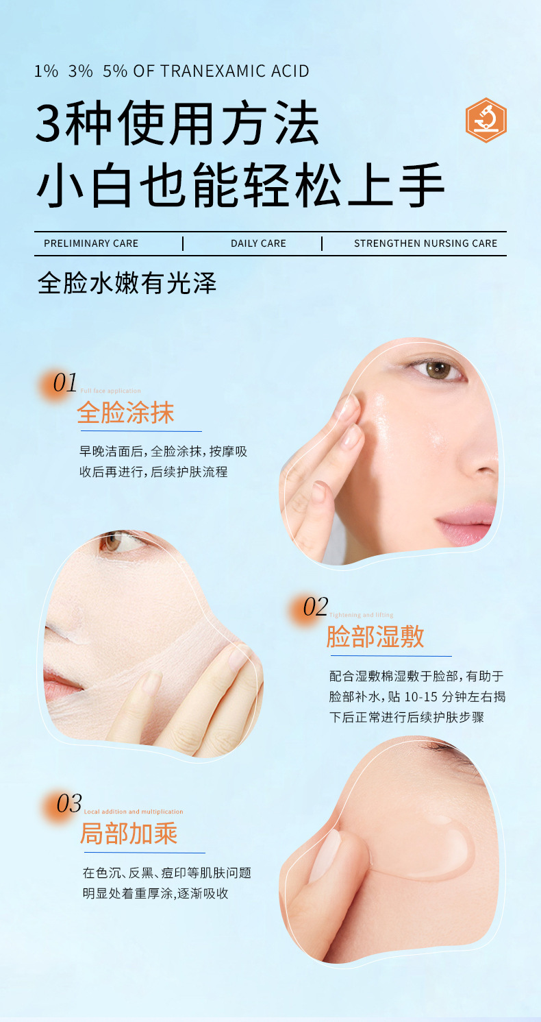 Qingling трансексамовая кислота влажный компресс жидкость 5% укрепляющая и увлажняющая, улучшает чувствительную кожу, покраснение, тусклость и осветляет кожу