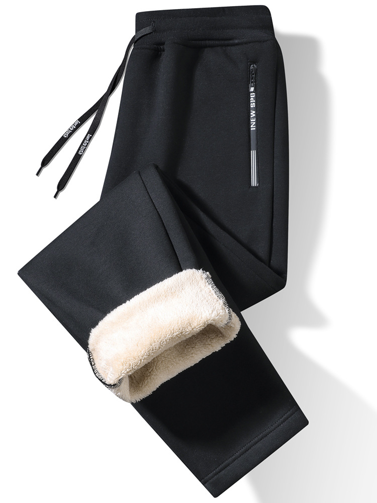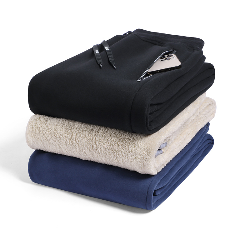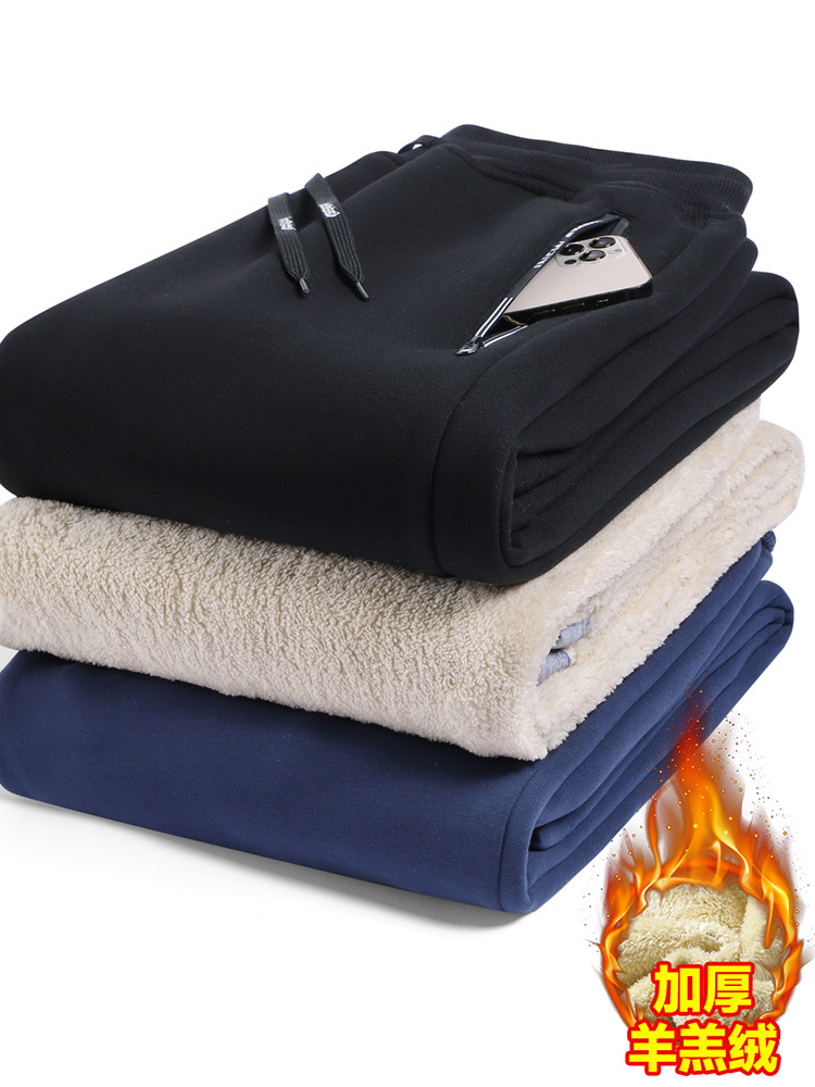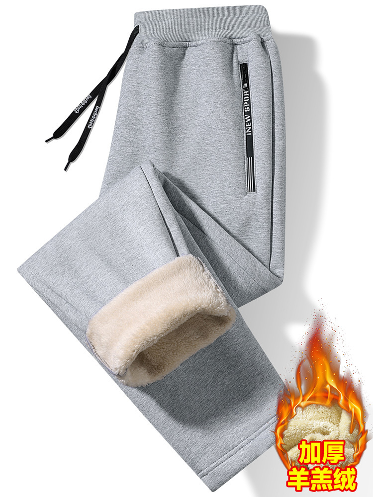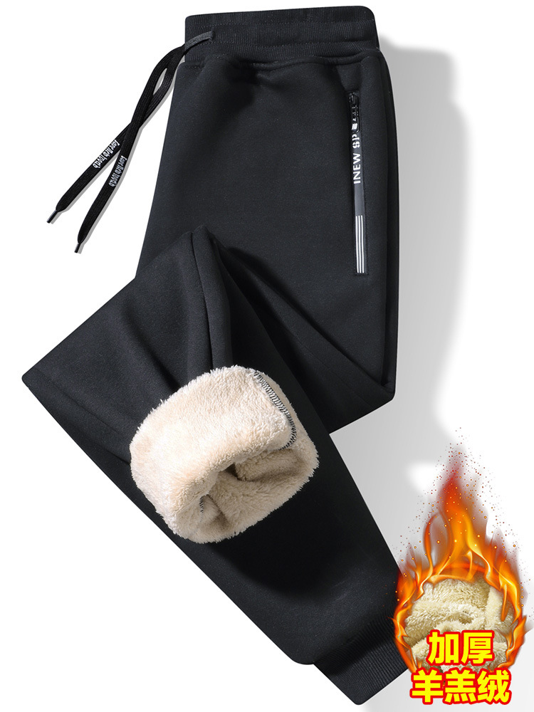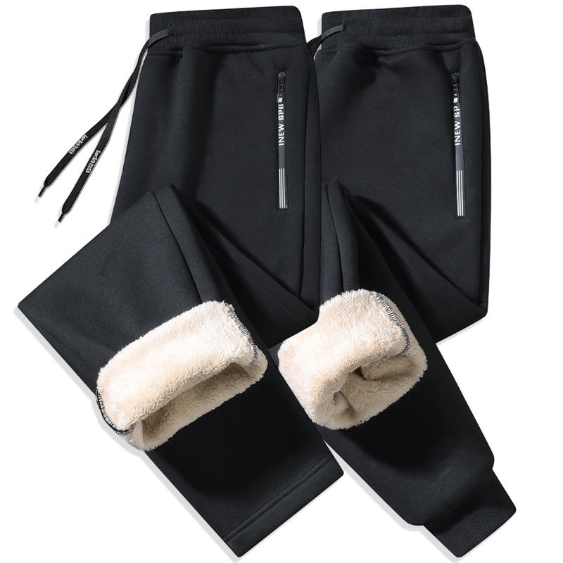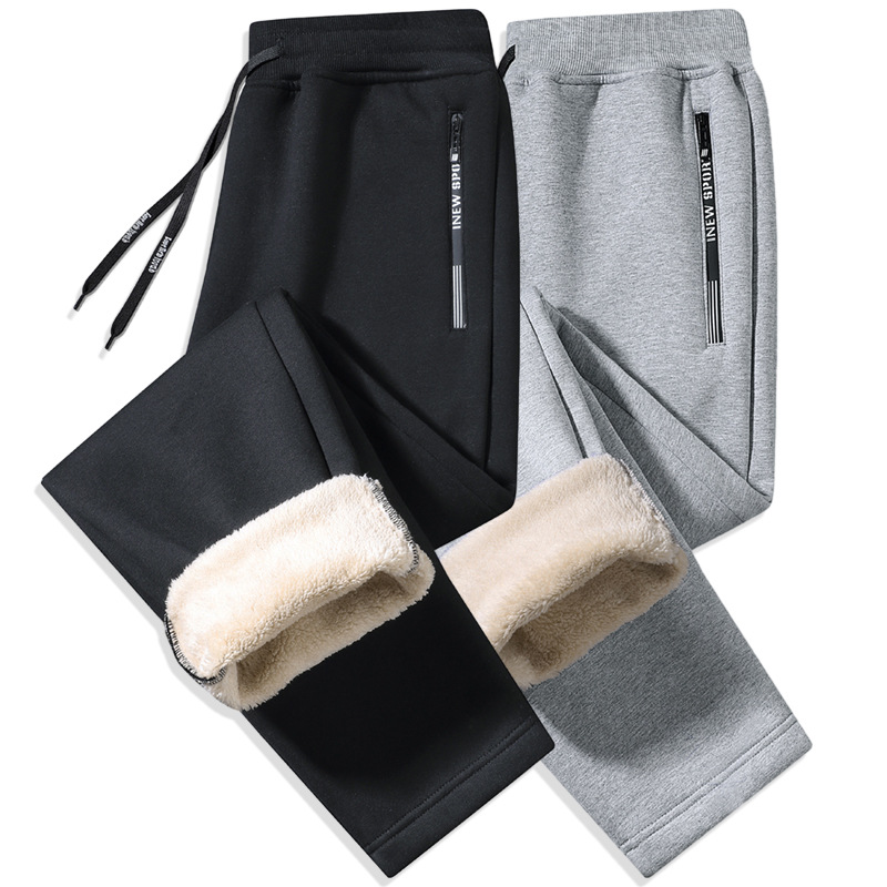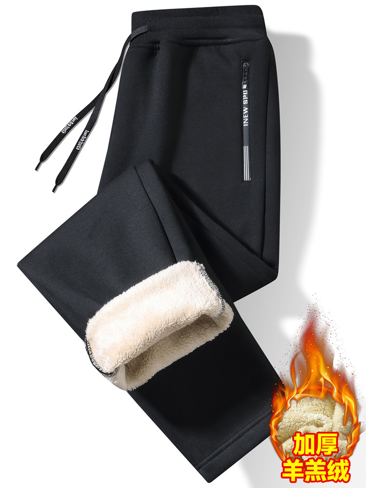 Кросс-бодер толстые флисовые спортивные штаны с подкладкой из овечьей шерсти, прямые брюки с манжетами, модные повседневные спортивные штаны