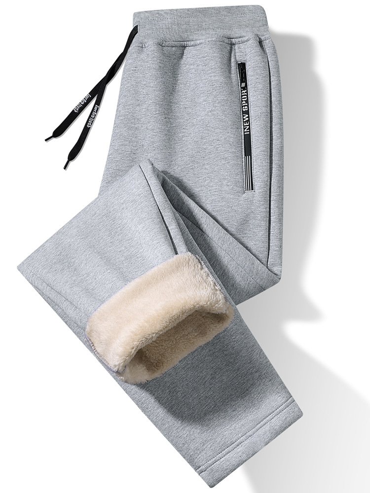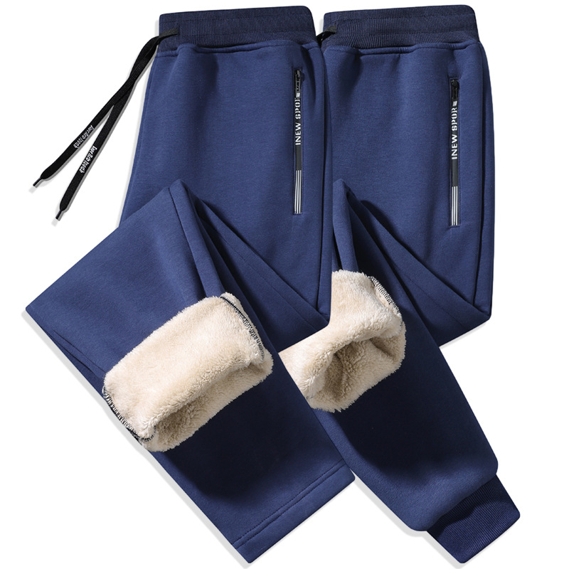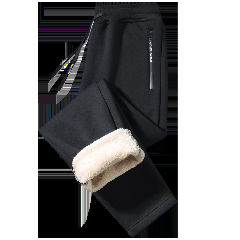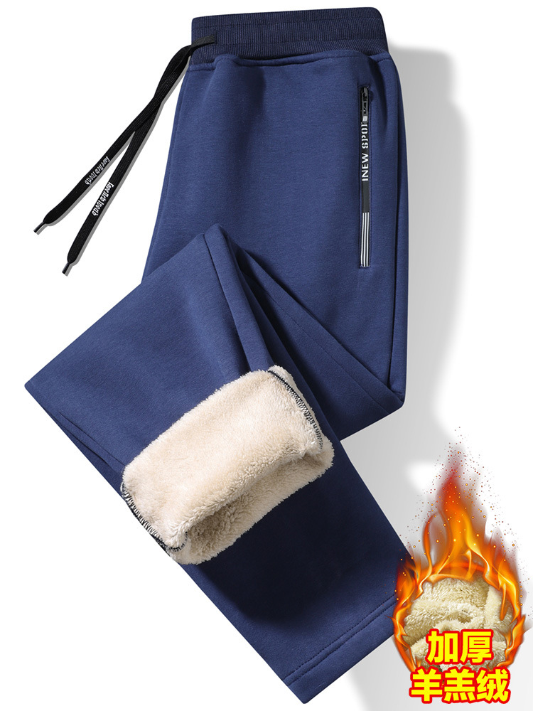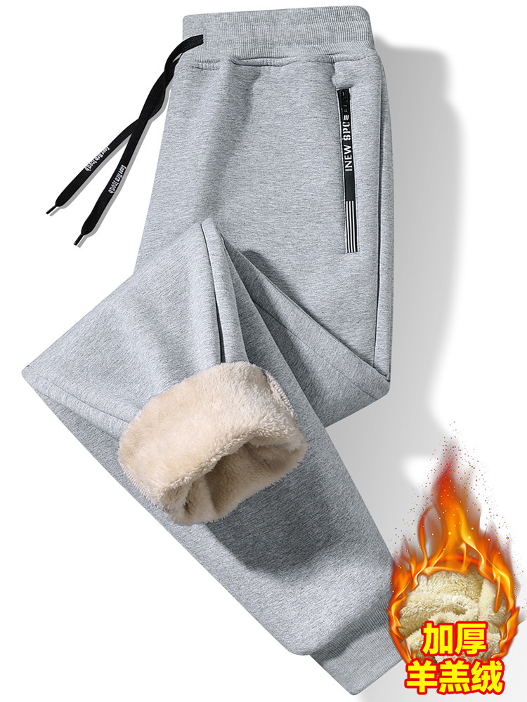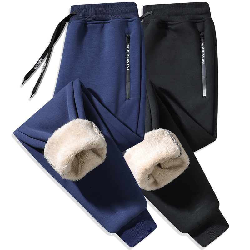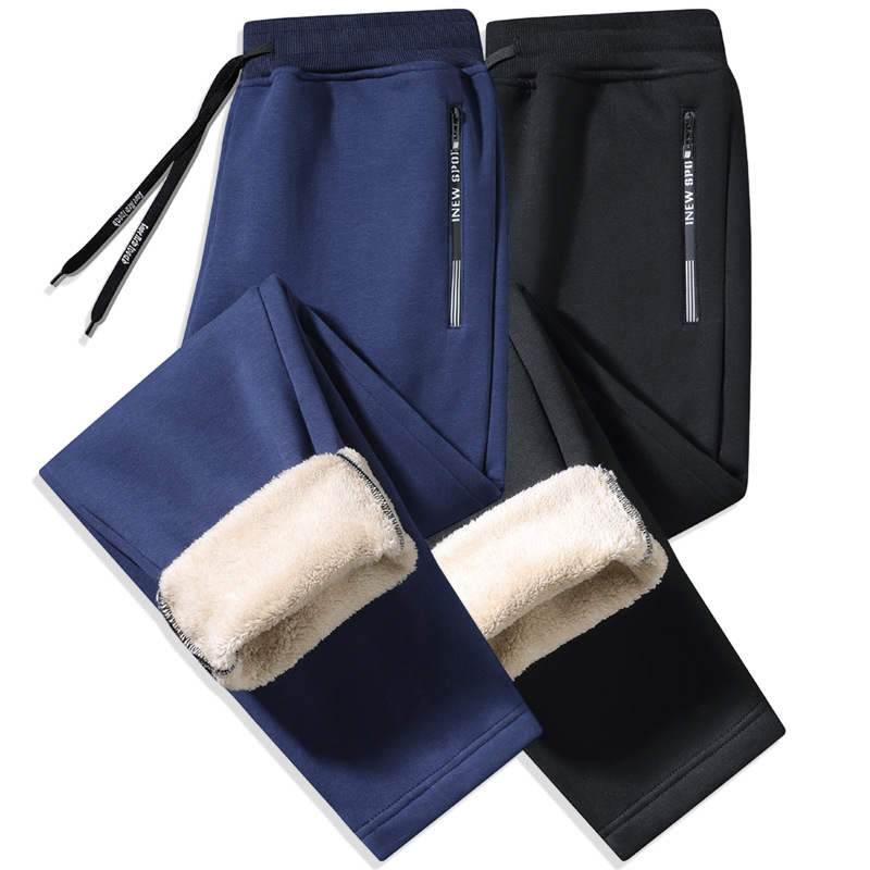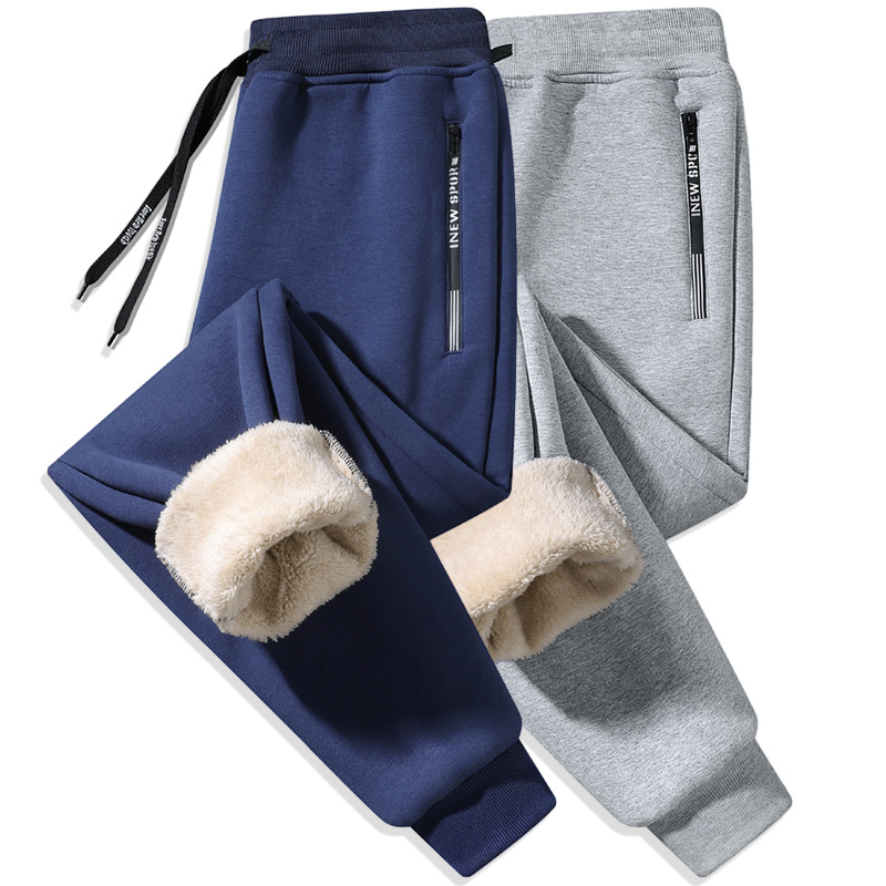 Кросс-бодер толстые флисовые спортивные штаны с подкладкой из овечьей шерсти, прямые брюки с манжетами, модные повседневные спортивные штаны
