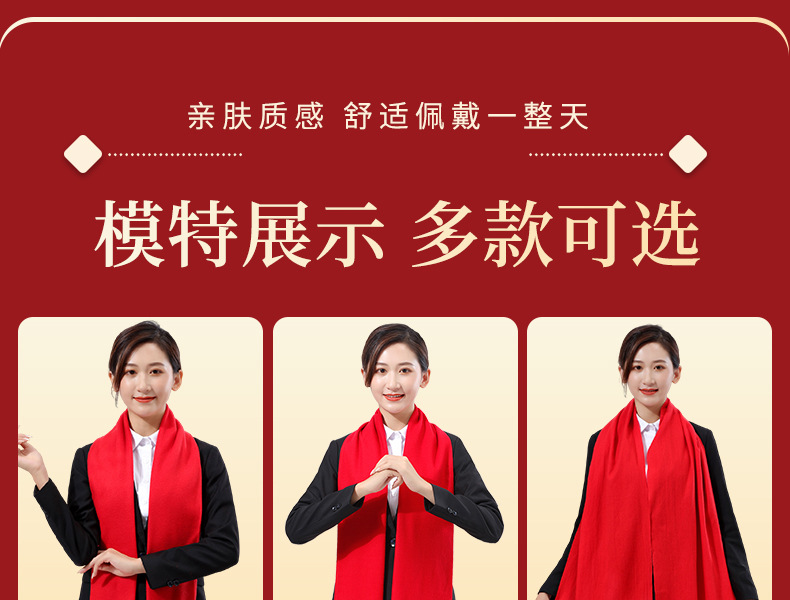 Красный шарф с индивидуальной печатью логотипа и вышивкой, китайский красный, большой красный для ежегодной встречи