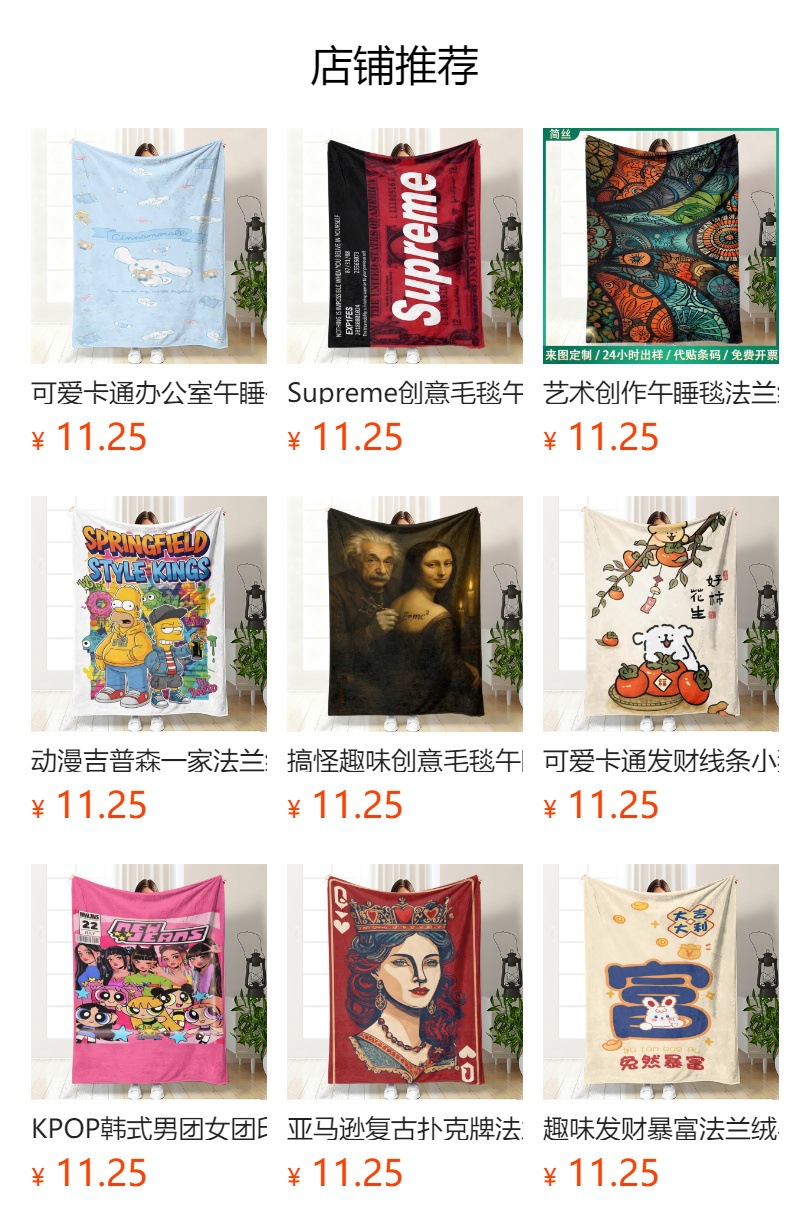 印花厂家法兰绒毛毯午睡毯毯子来图定制一件起办公室沙发盖毯披毯