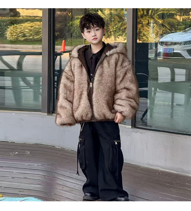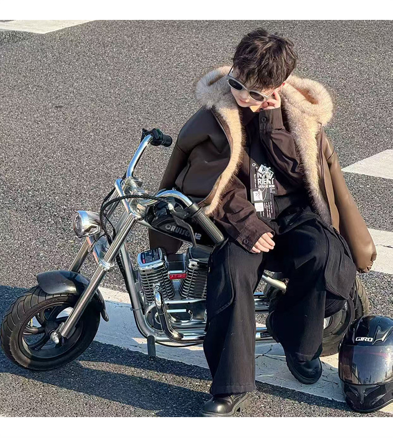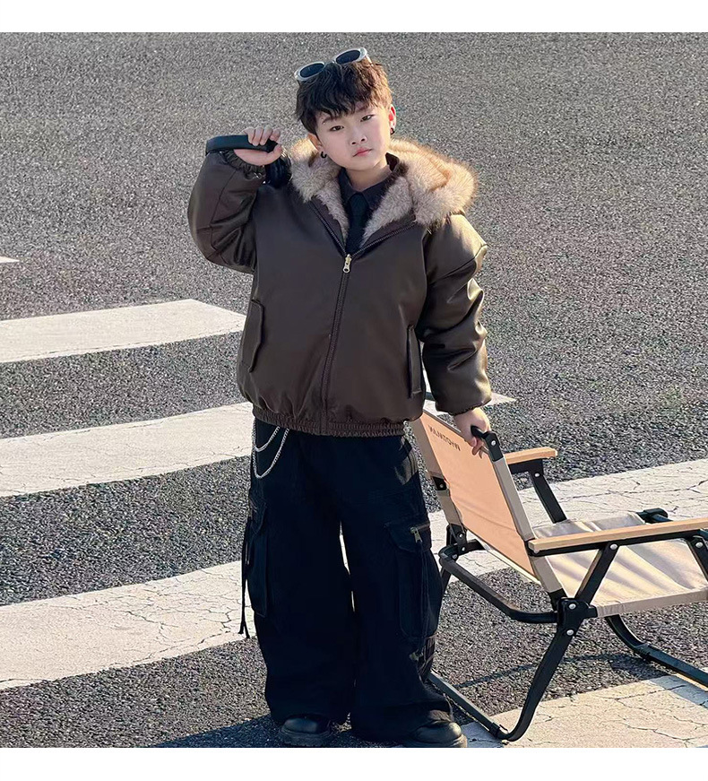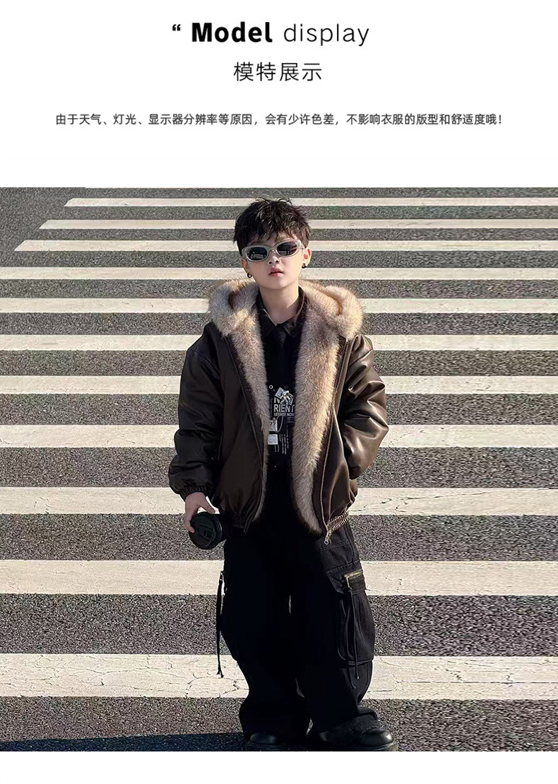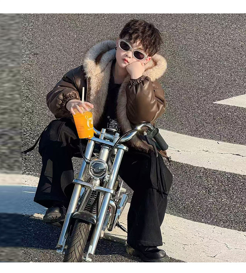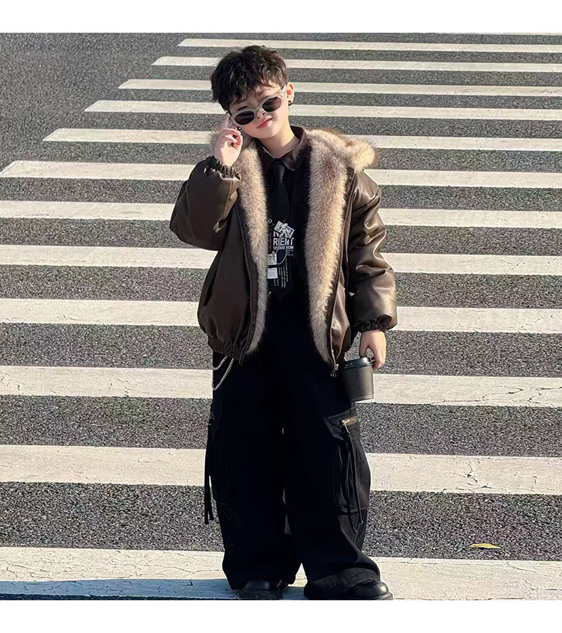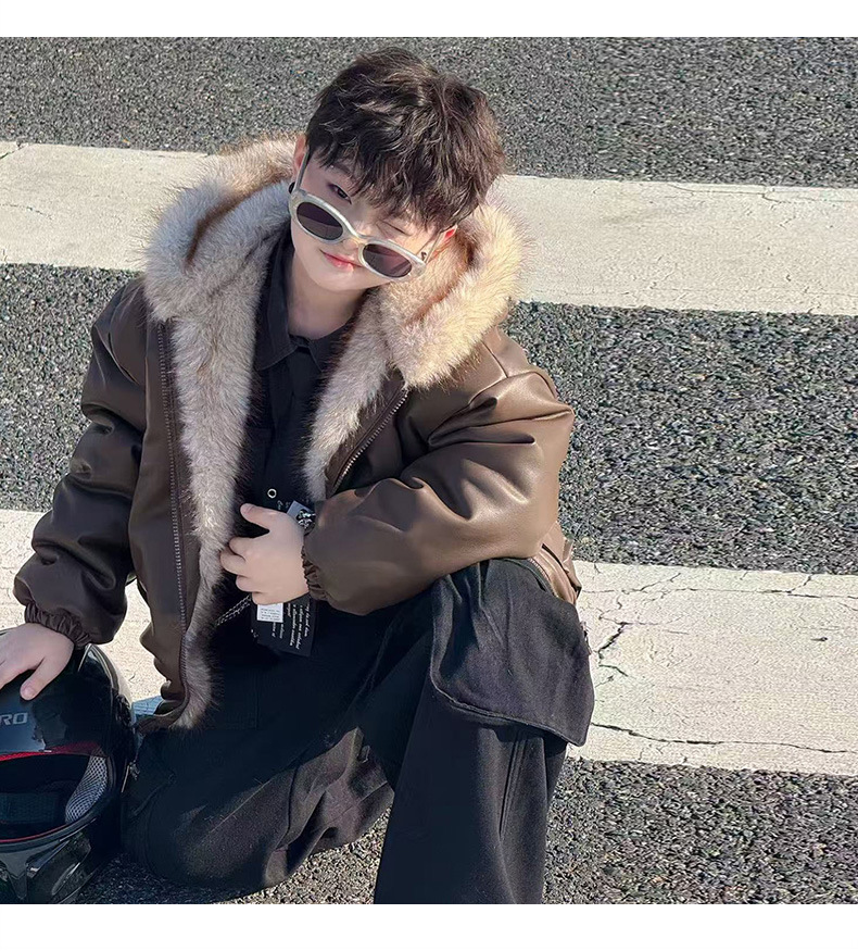 Утолщенная кожаная куртка с флисовой подкладкой для мальчиков 2025 новый стильный детский зимний жакет из искусственной кожи обратимый для маленьких джентльменов