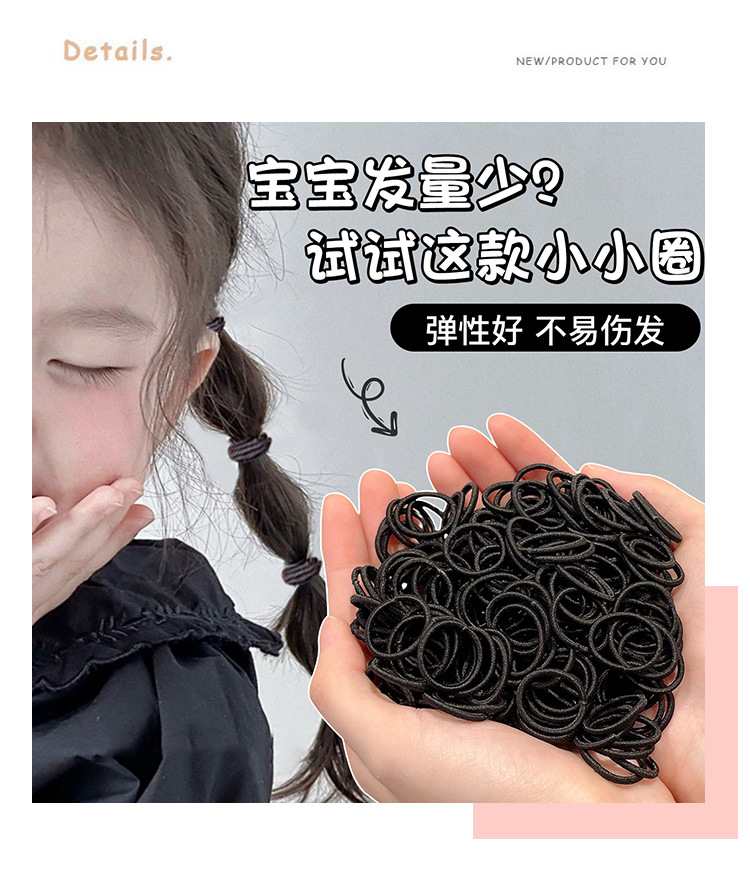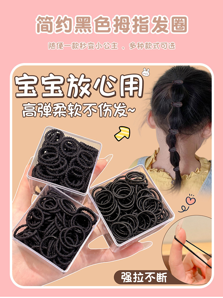 Детская черная резинка для волос, новый стиль 2025, для девочек, с маленьким объемом волос и высокой эластичностью