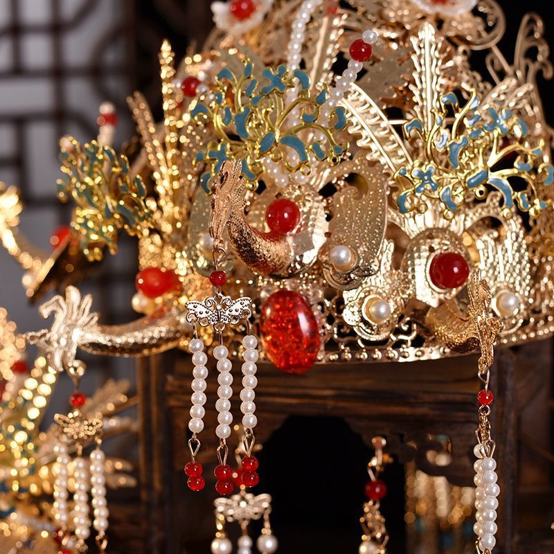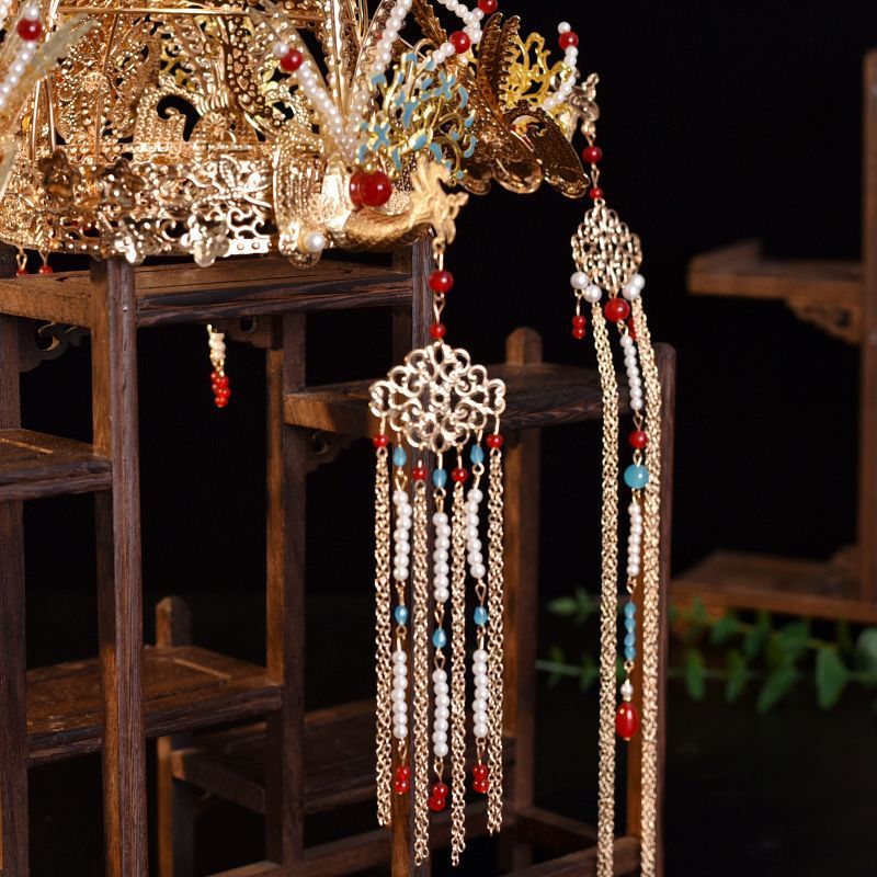 Головной убор в древнем стиле, династия Хань, универсальная свадебная шпилька, аксессуары из Дуньхуана, кисточки, корона из династии Мин, аксессуары для волос, набор короны феникса
