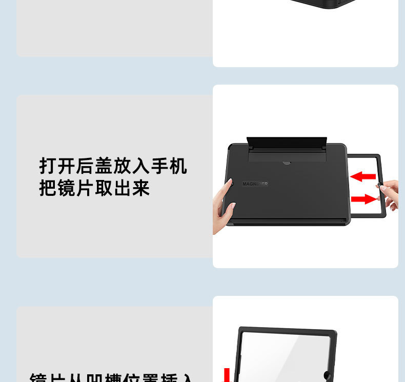 J01 съемный увеличитель экрана мобильного телефона, горизонтальный и вертикальный, большой экран, 12 дюймов, ультрачистое увеличительное стекло, выдвижной экран высокой четкости