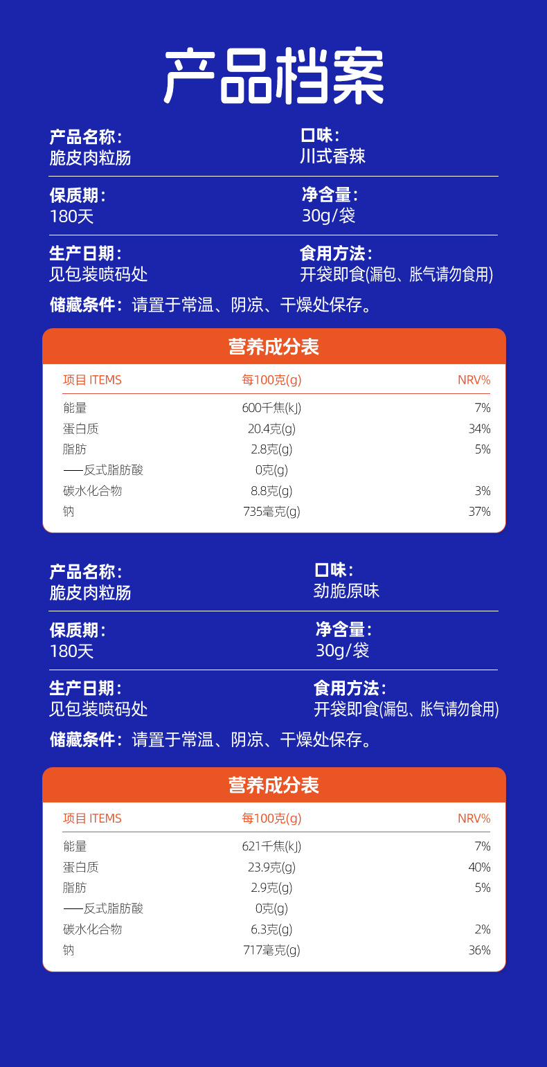 📦 | 30g crispy meat sausage original flavor*12 spicy flavor*12 | ¥57.88 / ≈ 699 ₽ | 1000 | 5970341917212 | |