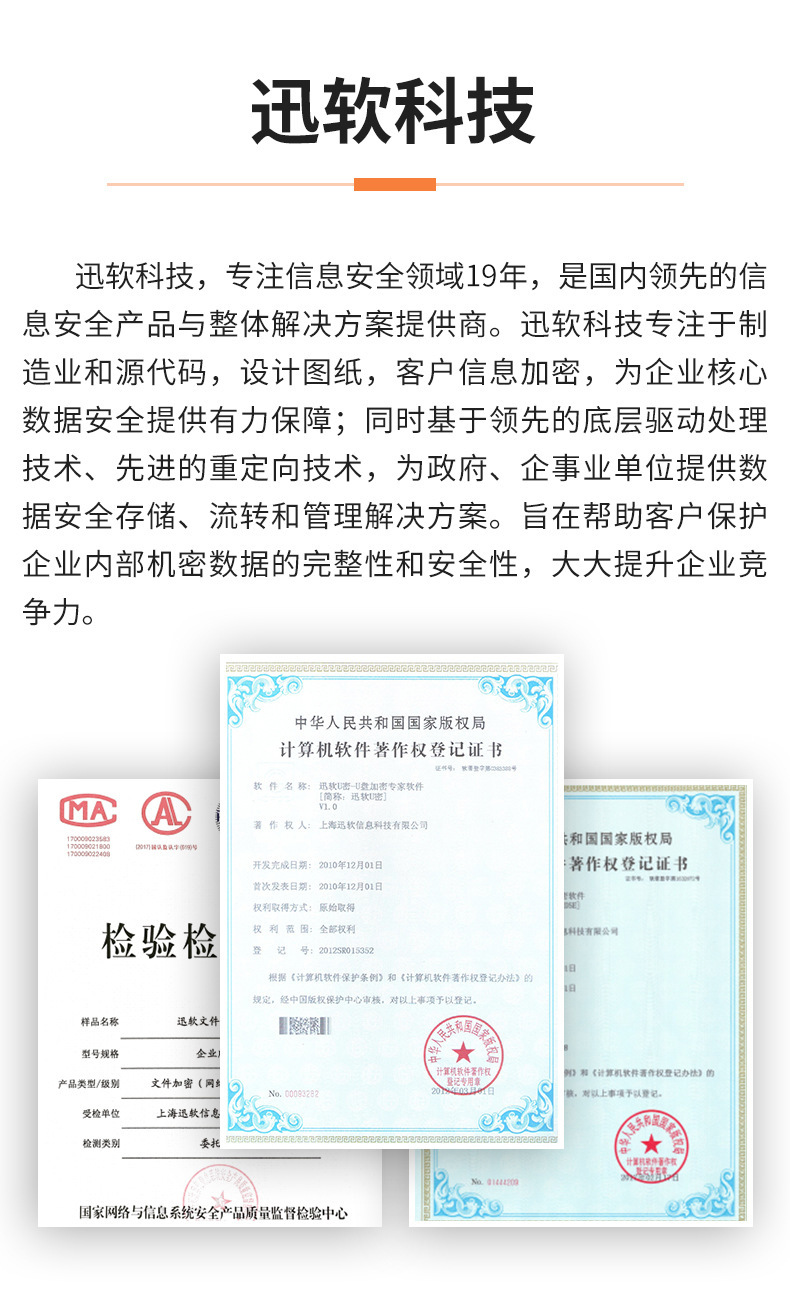 Время выхода на рынок 19 years of technology research and development and experience accumulation, xunruan terminal security management system, file encryption, sensitive content identification, access gateway, security u disk
