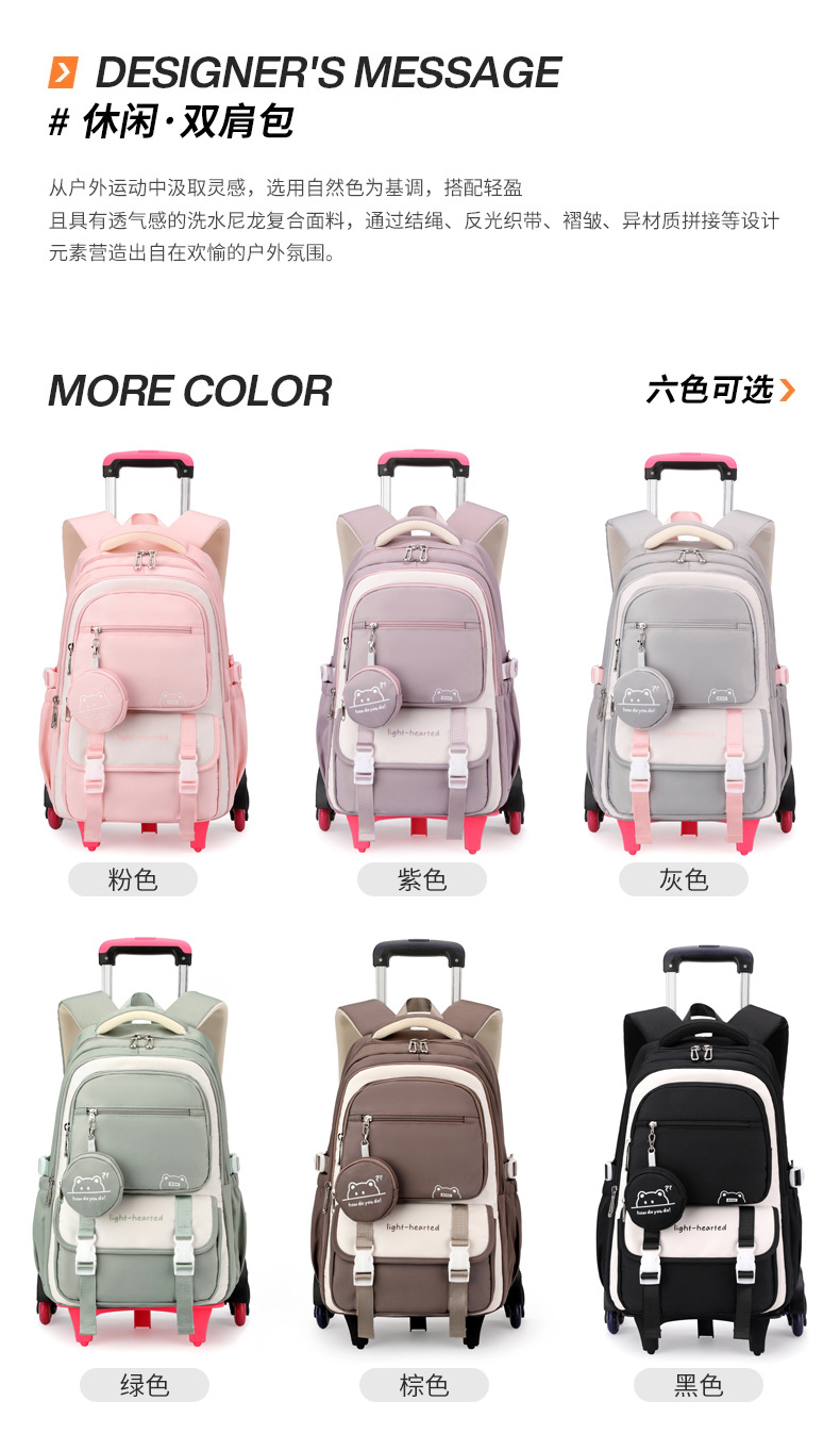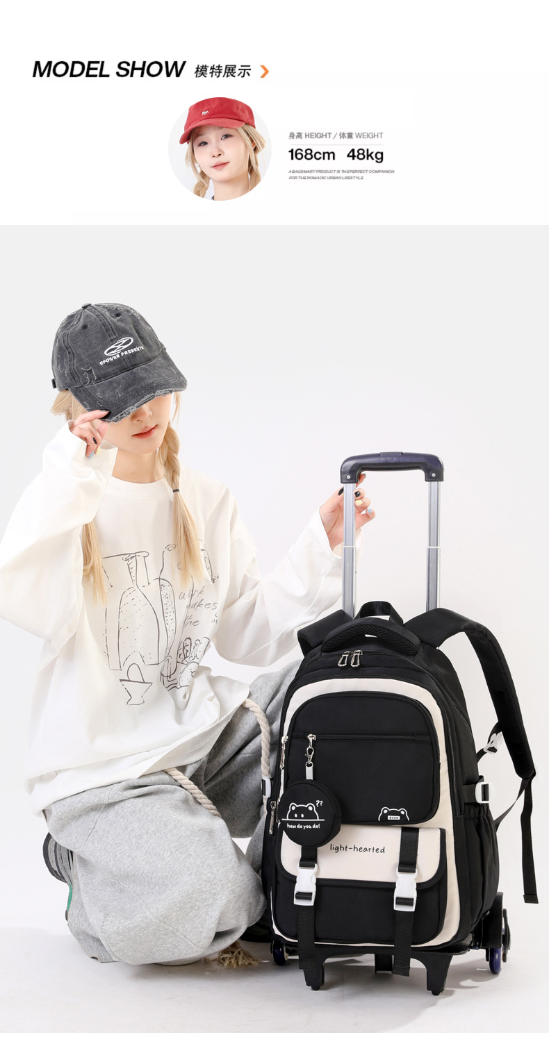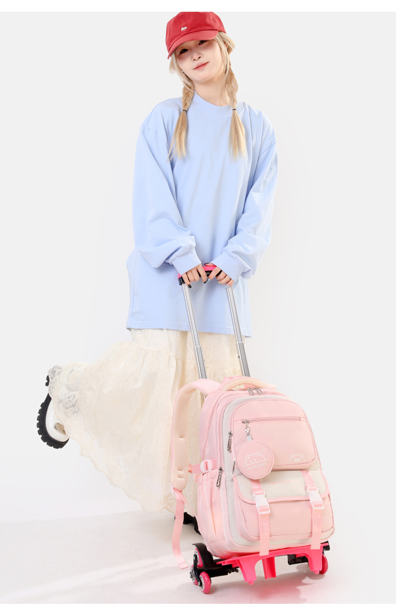 Естественная рыба тележка для девочек средней школы большой вместимости многоуровневый дизайн рюкзак с колесами