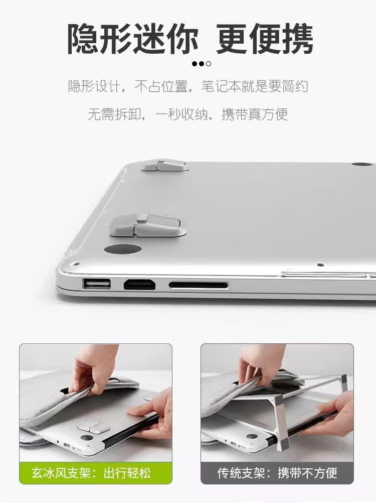 Лаптоп невидимая подставка алюминиевый сплав ноутбук резиновая подушка высокий кронштейн мини портативный увеличивающий складной охлаждающий