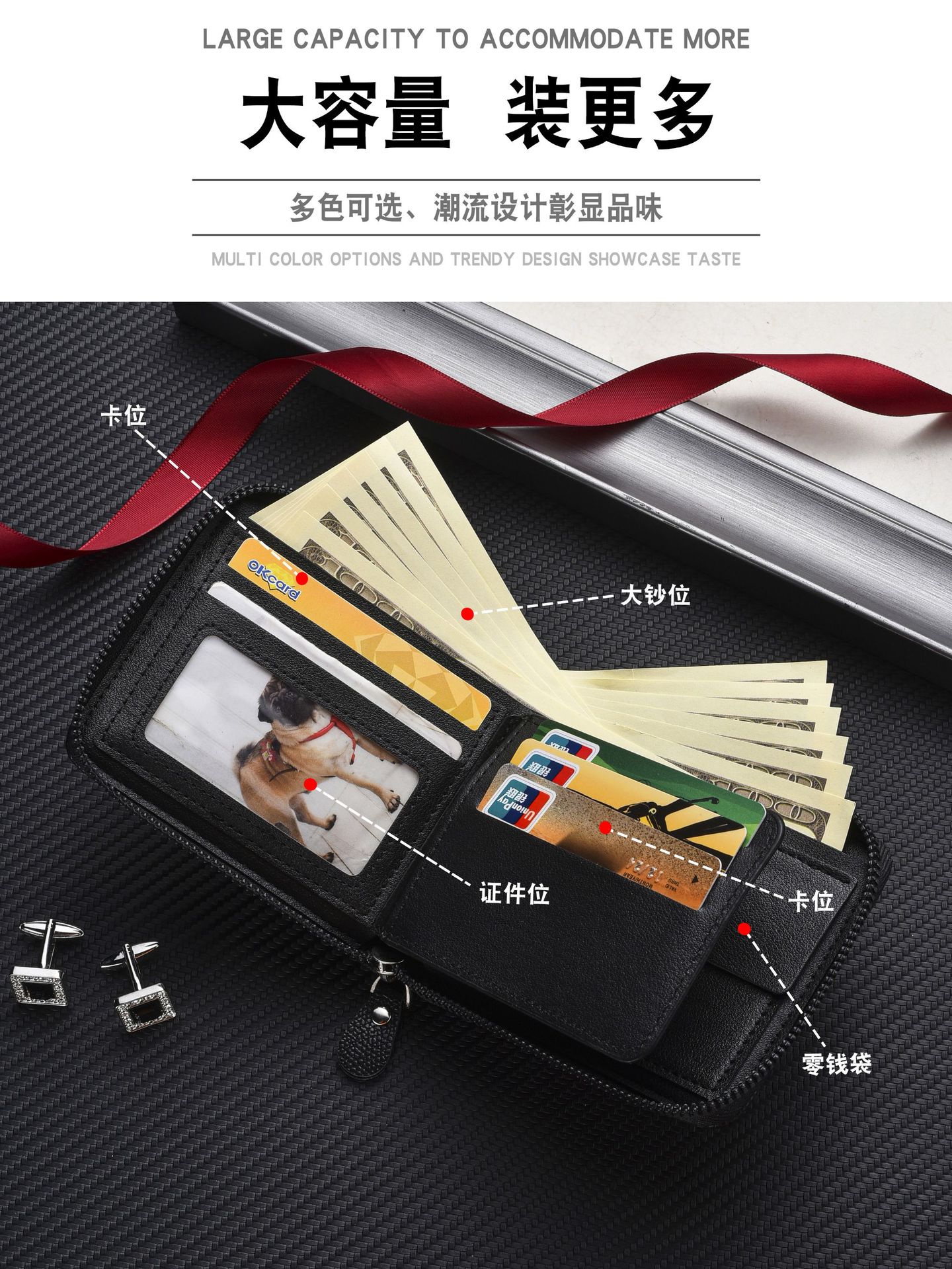 Мужской кошелек короткий большой емкости с несколькими карманами для карт новая сумка на молнии ID многофункциональная монетница оптовая продажа