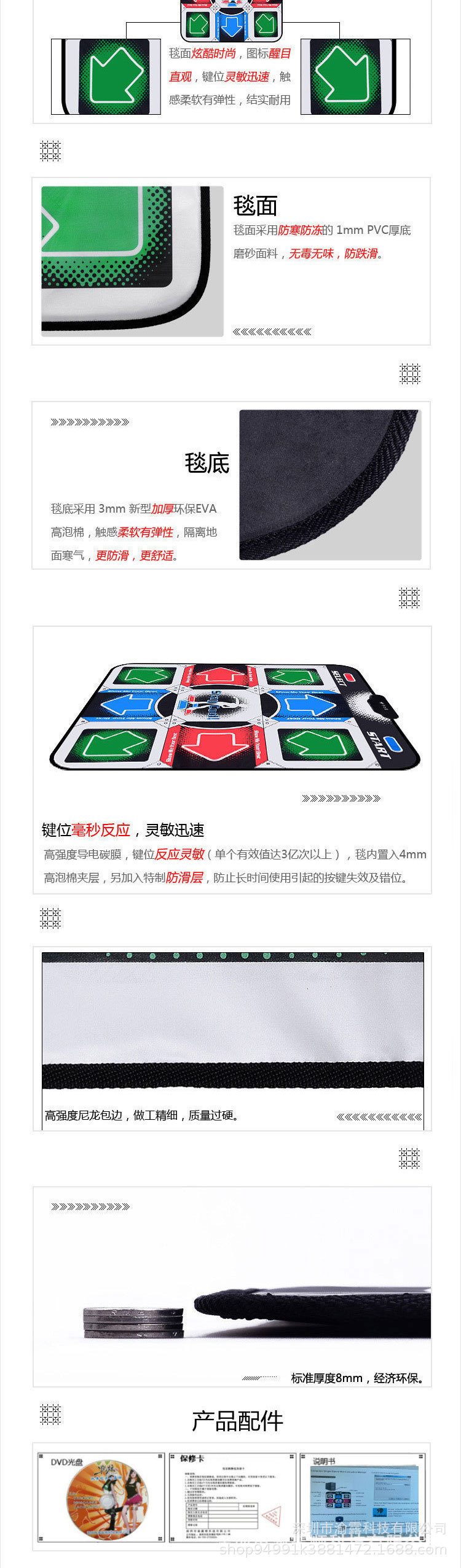 产品配置:跳舞毯一条+说明书+安装光盘一张。