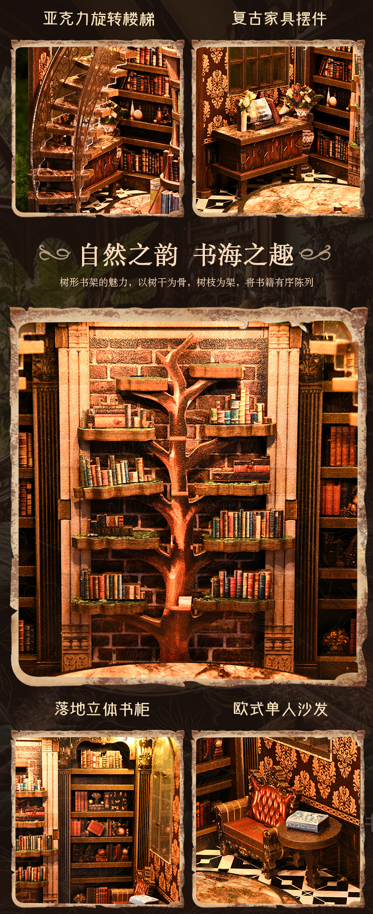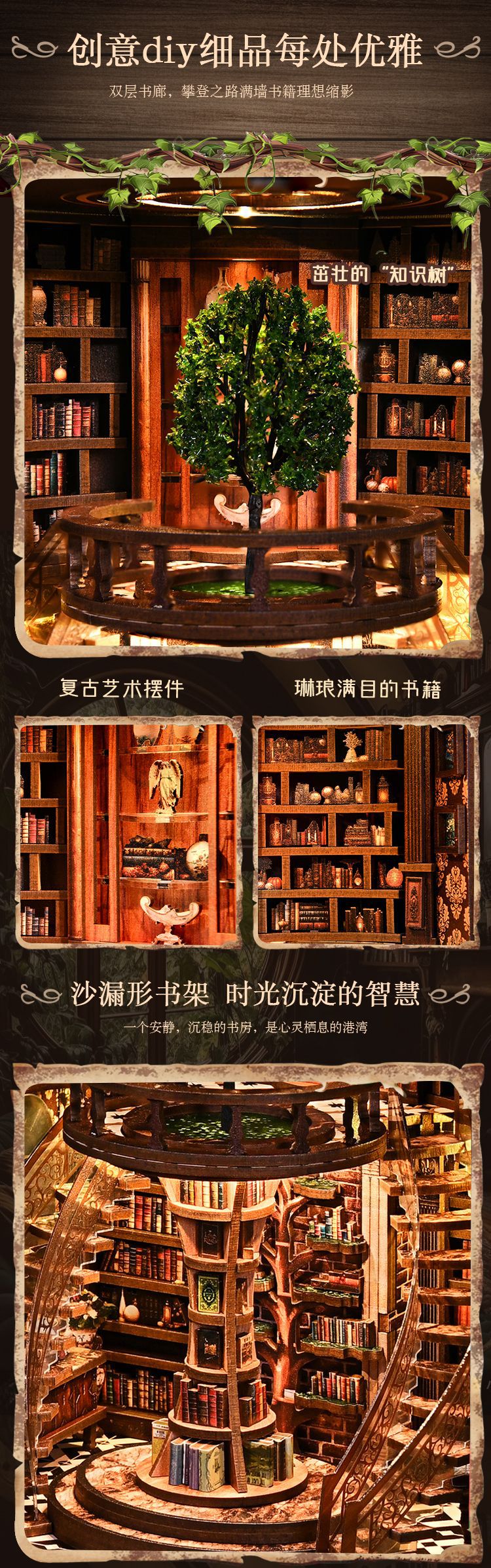 Книжный магазин Дерево мудрости DIY миниатюрная модель дома 3D пазл подставка для книг двуязычная (китайский и английский) кросс-бодер