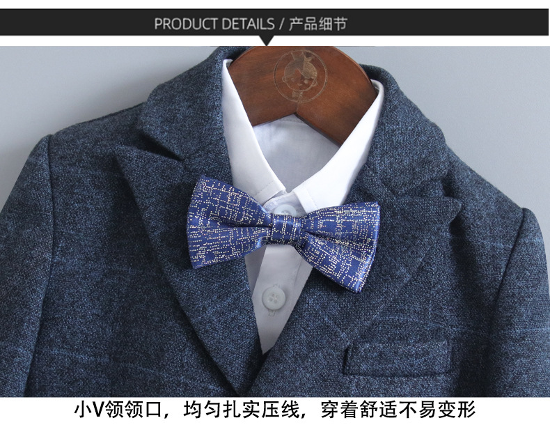 ![]() | Gray plaid: suit + vest + pants + white cotton shirt + royal blue bow tie + three-color corsage | 130cm | ¥129.0 / ≈ 1 554 ₽ | 617 | 5971852428098 | |