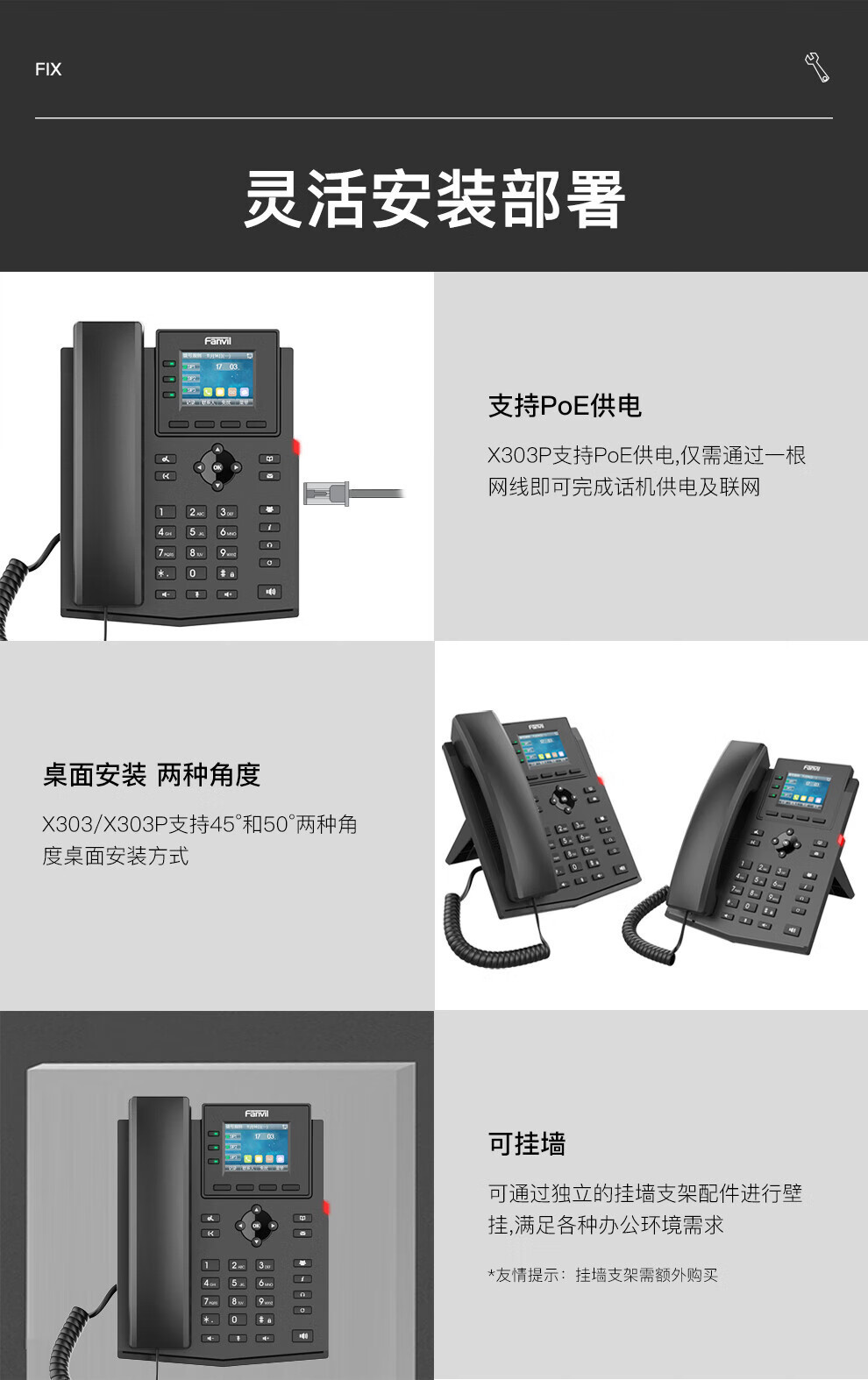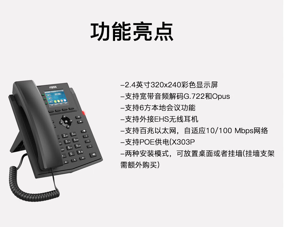 IP телефон Fanvil 303P, SIP, стационарный, цветной дисплей, HD звук, конференц-связь на шесть участников