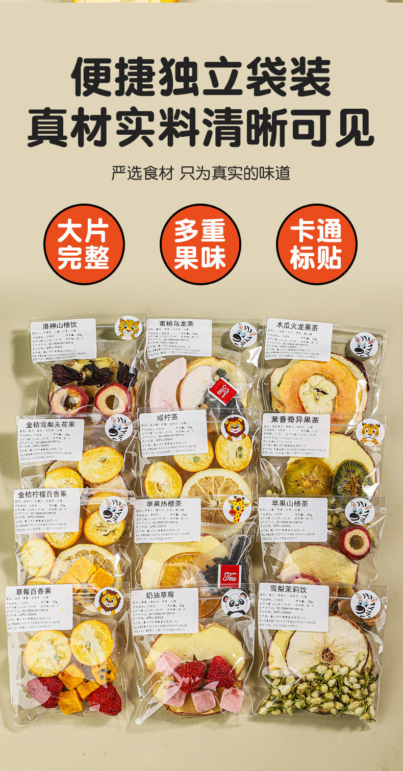 工厂冻干水果茶青桔柠檬金桔百香果苹果山楂雪梨蜜桃乌龙茶对对碰