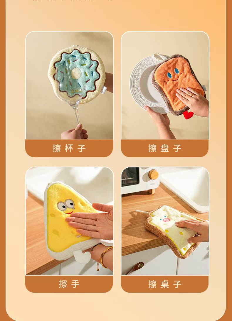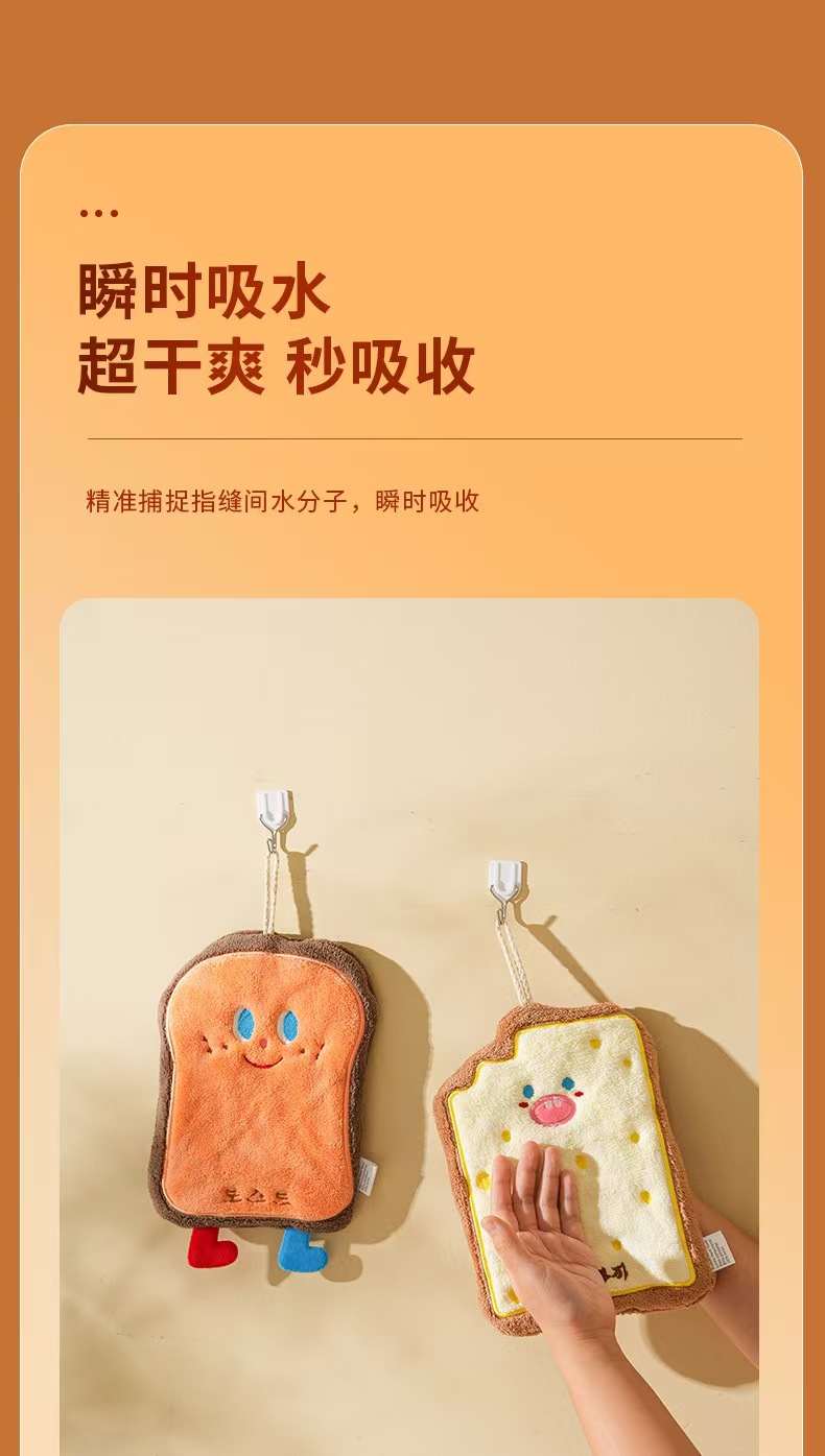Милое полотенце для рук, висячее, впитывающее, утолщенное, мультяшное, для ванной, маленькое квадратное, кухонное