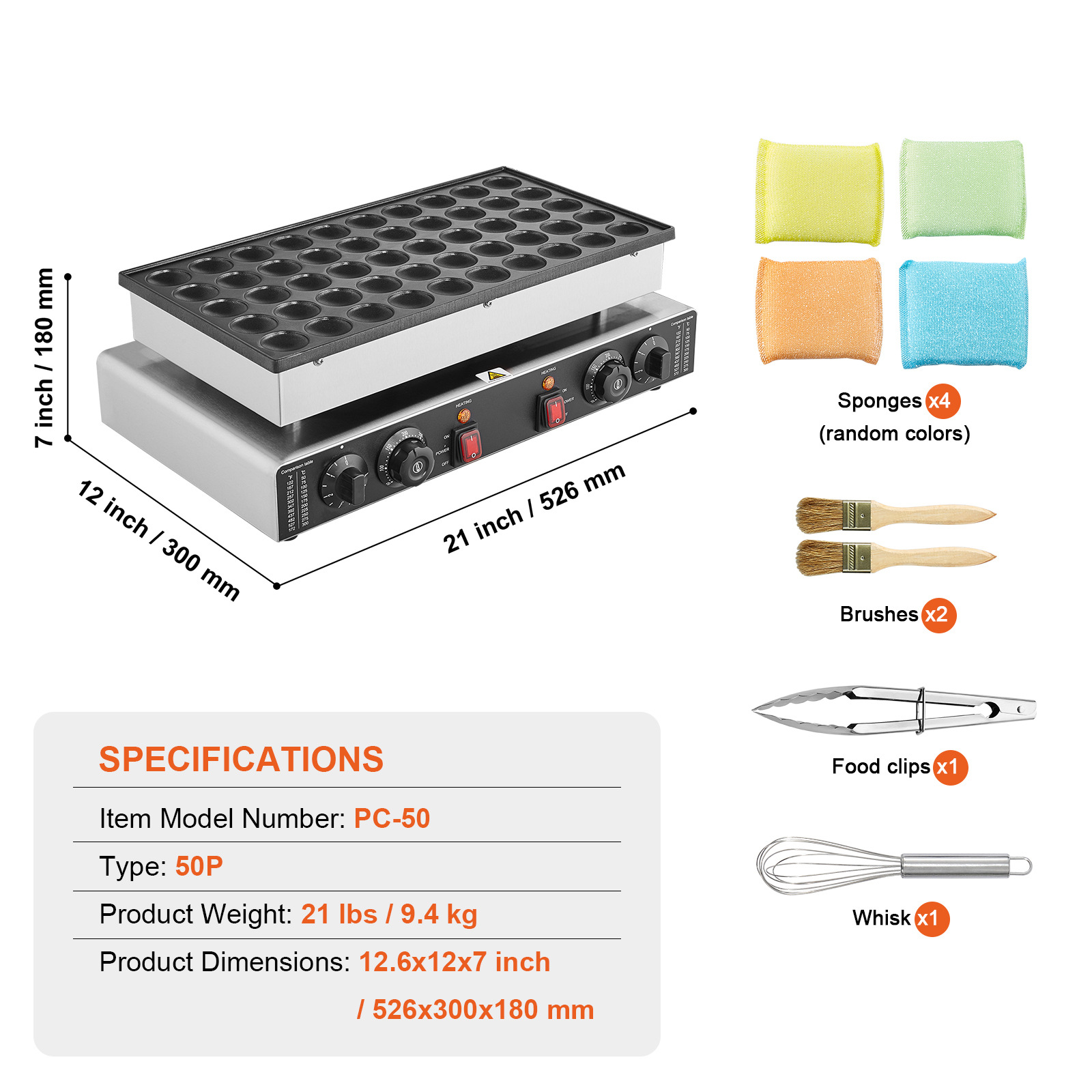 Коммерческая машина для блинов Vevor, 50 ячеек, машина для доряки, 1700W, вафельница, 110V