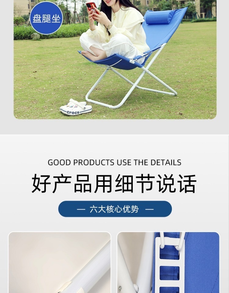 Складной кресло-реклайнер с подголовником, для балкона, простое спальное кресло, портативное уличное пляжное кресло, реклайнер для офиса