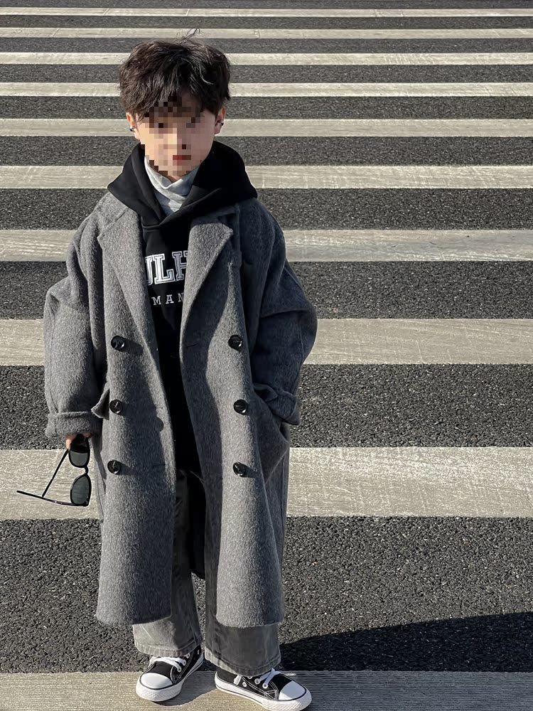 Детская двусторонняя кашемировая верхняя одежда, новая зимняя шершавая одежда 2025 года для мальчиков и девочек среднего и старшего возраста, весенне-осенне-зимняя