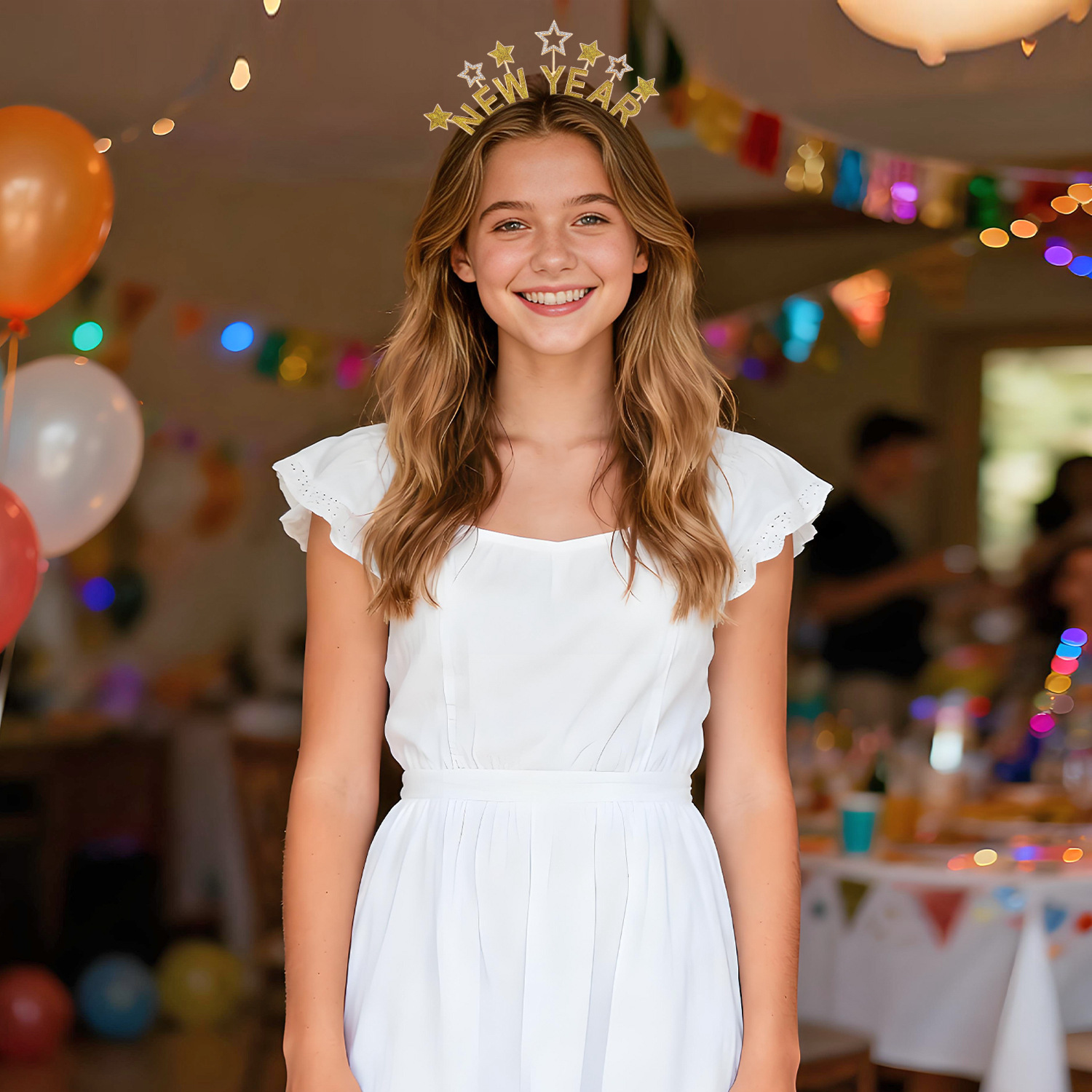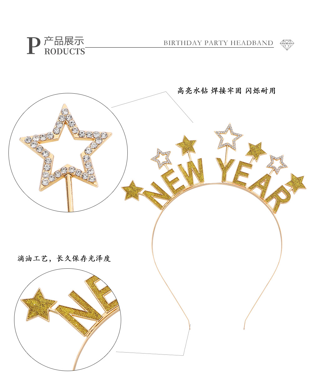 Новый год, декоративная повязка на голову с капающими звездами и буквами