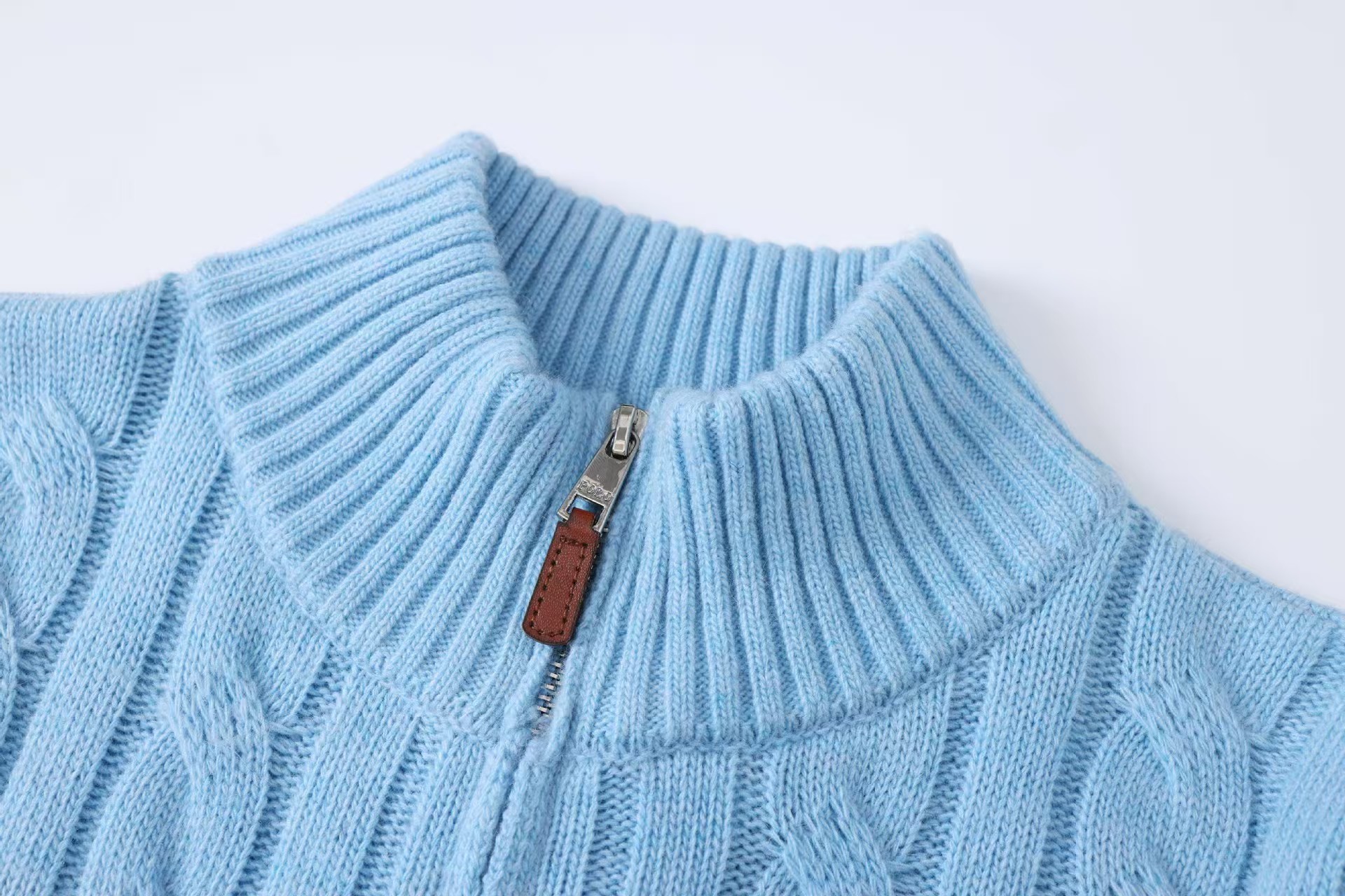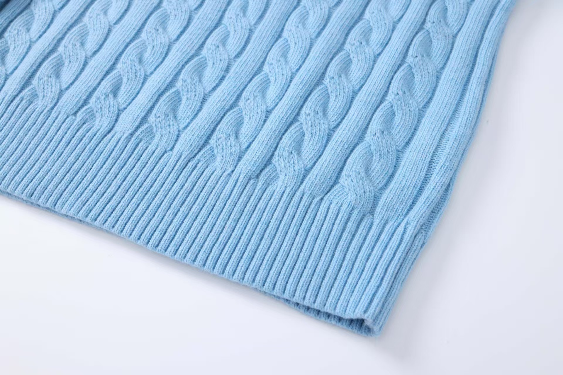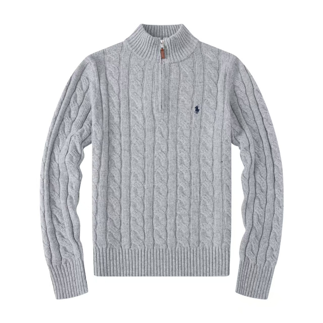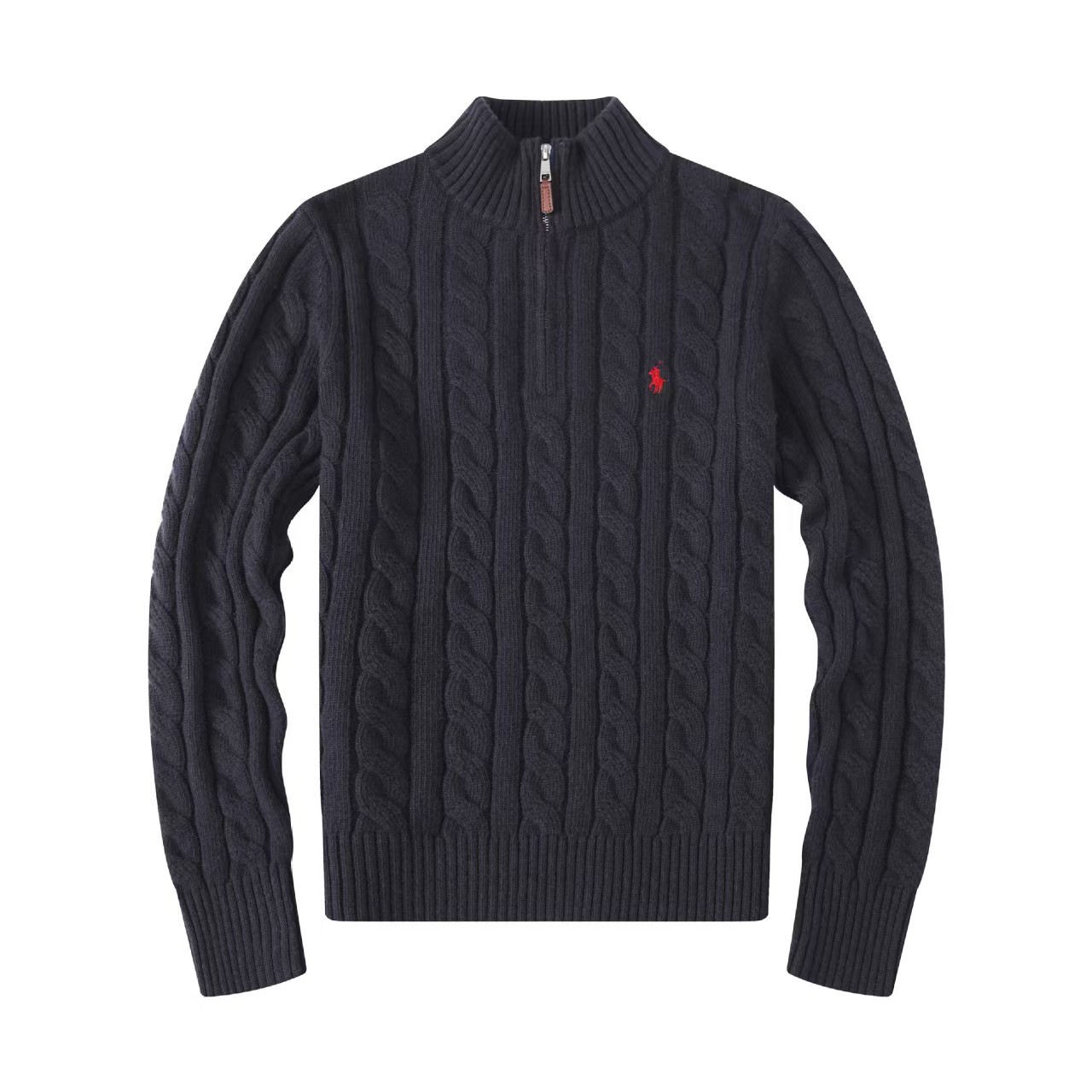 Кросс-бордерный свитер с вышитым логотипом пони Rl в европейском и американском ретро стиле, полузип, из чистого хлопка