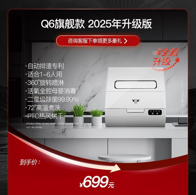 Посудомоечная машина 2025 на 6 персон, полностью автоматическая, умная, маловодная, с дезинфекцией и горячей сушкой Q6 оптом
