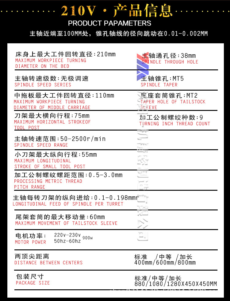 Максимальный диаметр точения 210