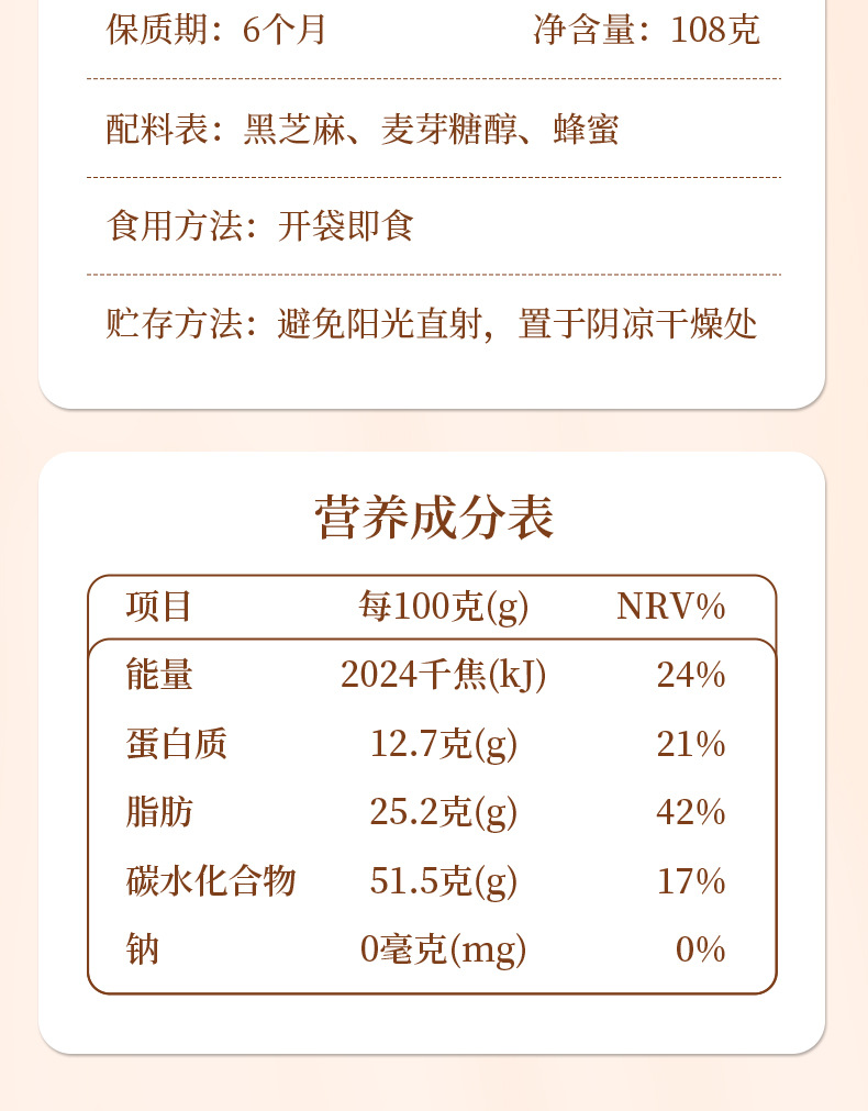 Кунжутные шарики 108г, готовые к употреблению, подходят для всех возрастов, индивидуальная упаковка, оздоровительные пилюли, обработка OEM