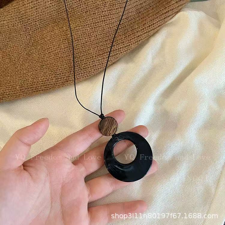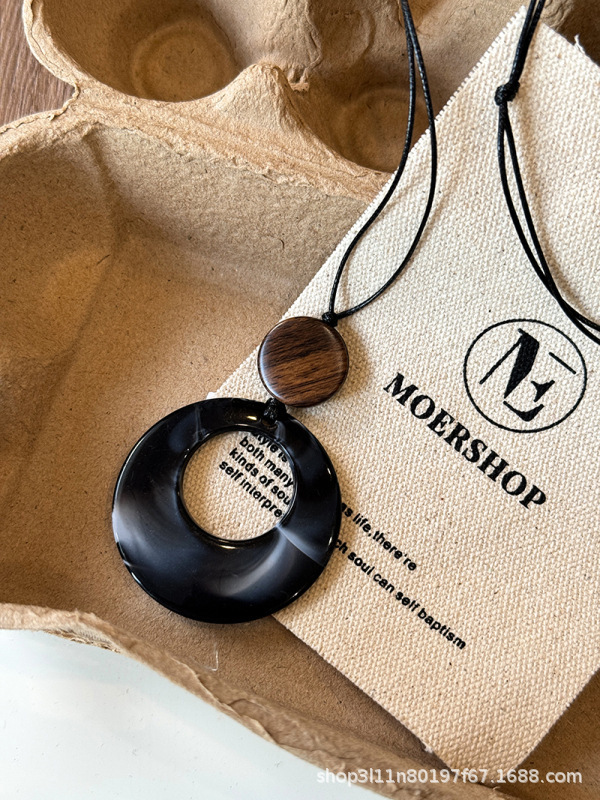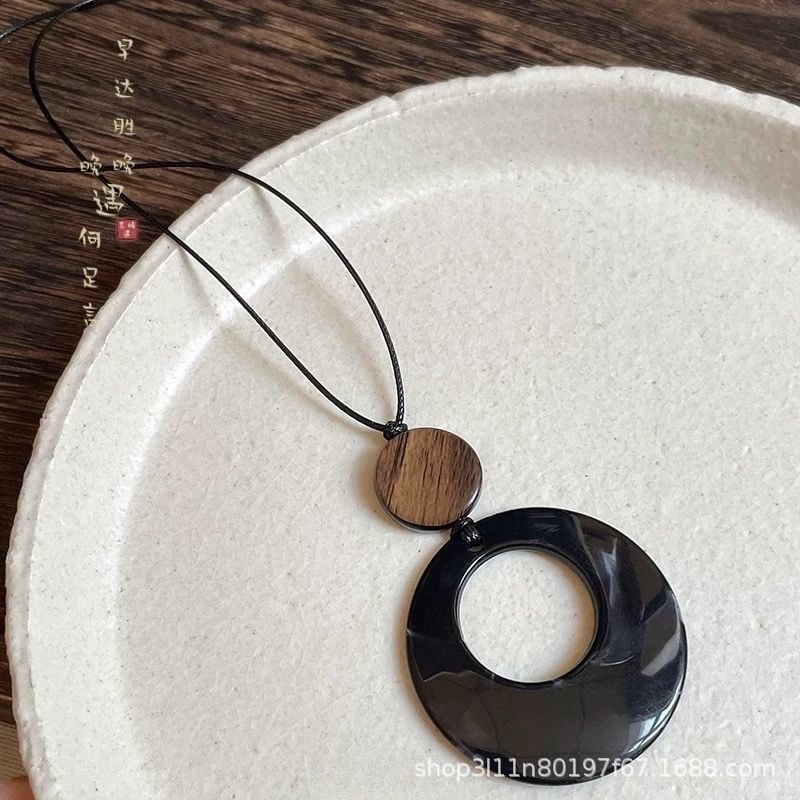 Новое китайское стильное полое деревянное круглое ожерелье, женские этнические аксессуары, нишевый дизайн, свитер цепочка, ретро хальтер
