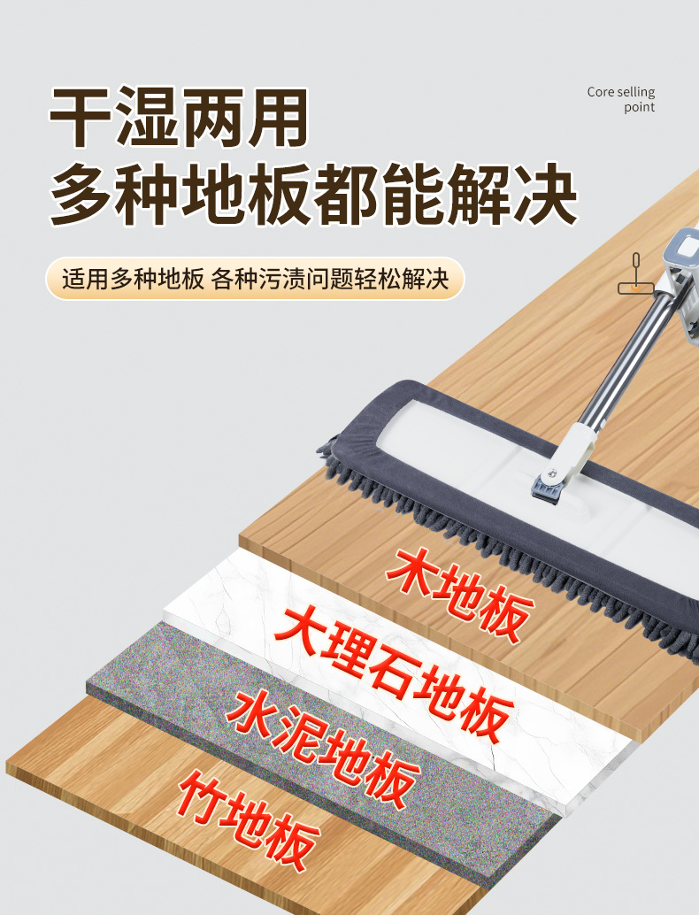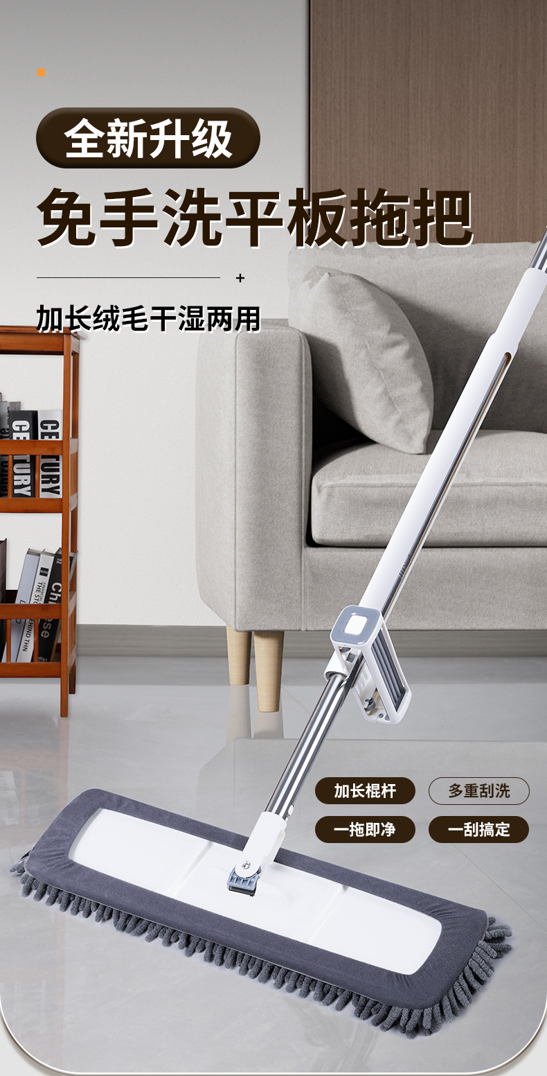 Большой плоский моп для впитывающей влажной двойной уборки на плитке и деревянных полах, хозяйственный инструмент для мытья, большой плоский моп
