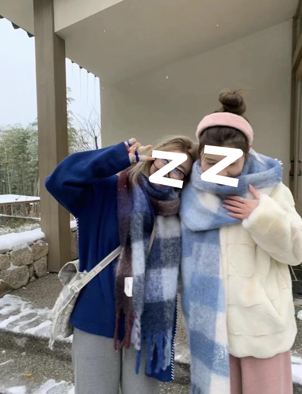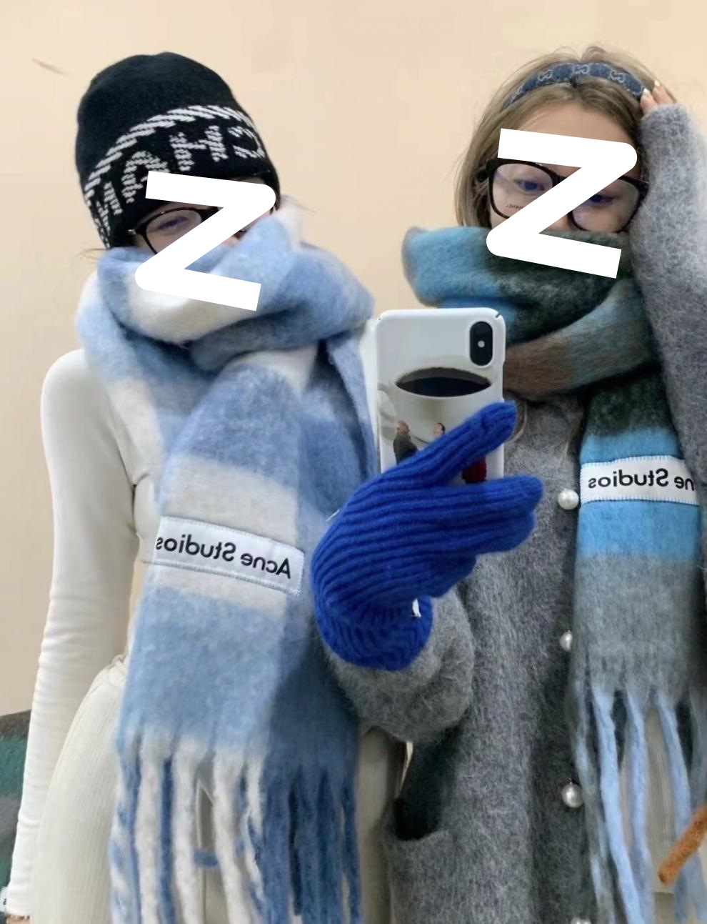 Осенний и зимний новый утолщенный теплый радужный клетчатый шарф европейского и американского стиля с толстыми кистями и цветными блоками
