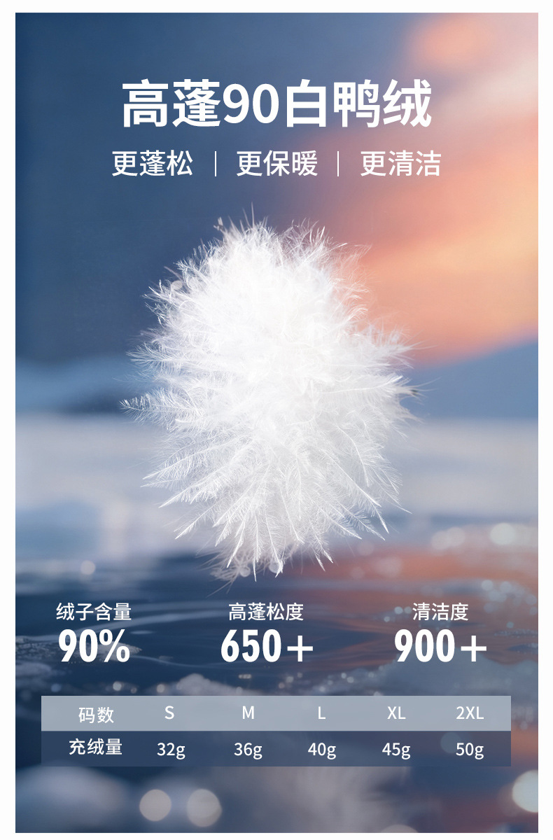 Количество пухового наполнителя S/32 m/36 l/40 xl/45 2xl/50