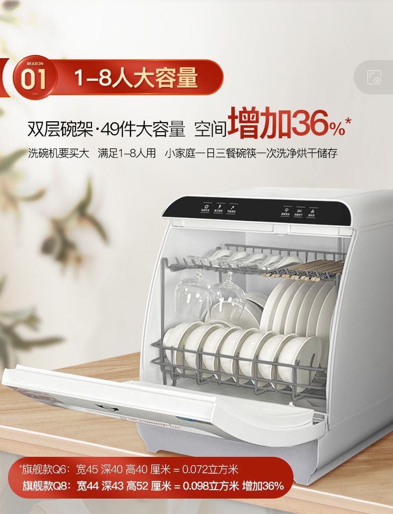 Встроенная посудомоечная машина Q8, для дома, на 8 персон, умная, автоматическая, двойное распыление, сушка и дезинфекция