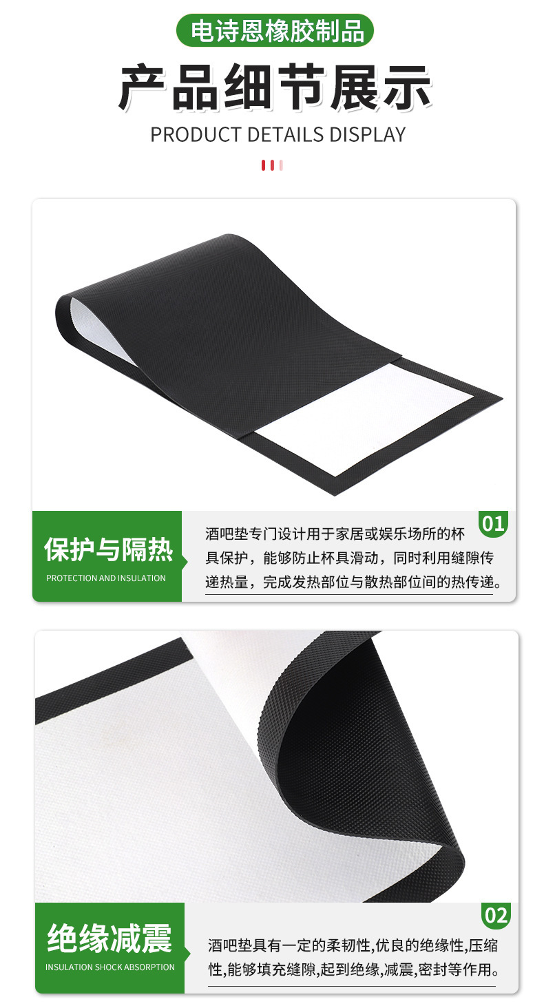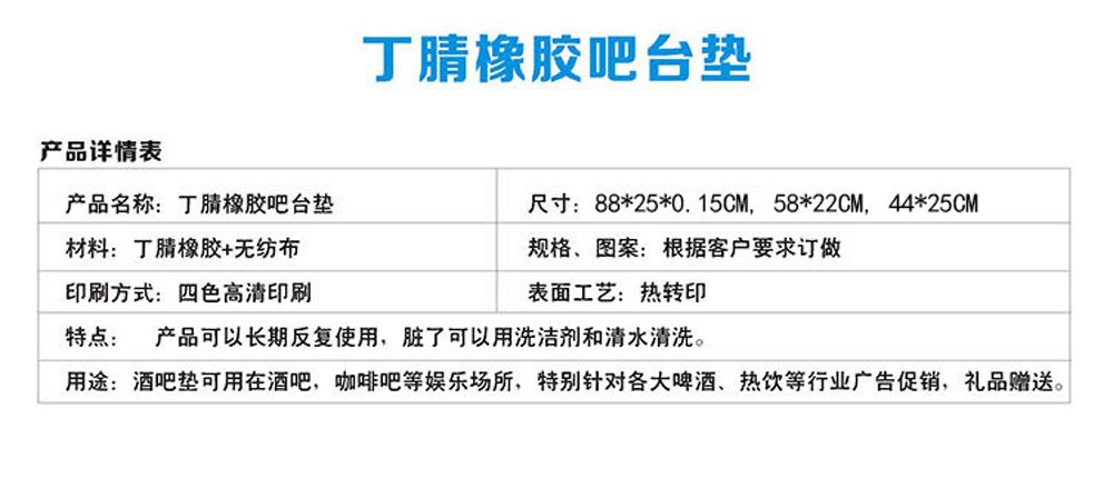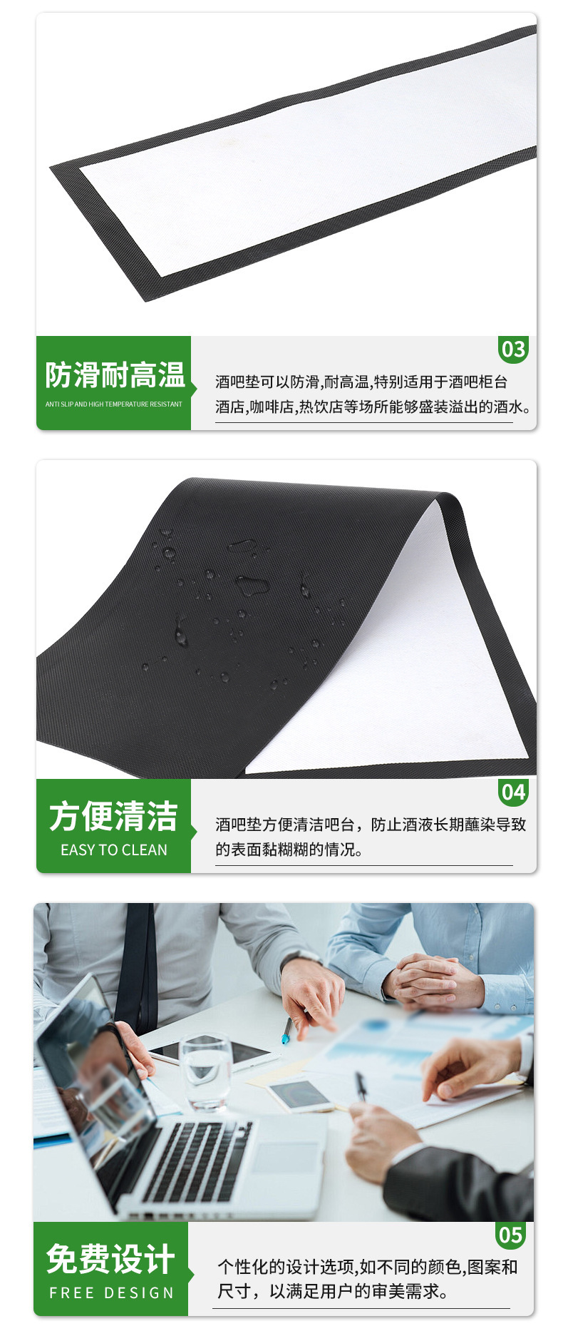 定制吧台垫黑边丁晴橡胶空白无纺布酒吧垫吸水隔热易清洁酒吧桌垫