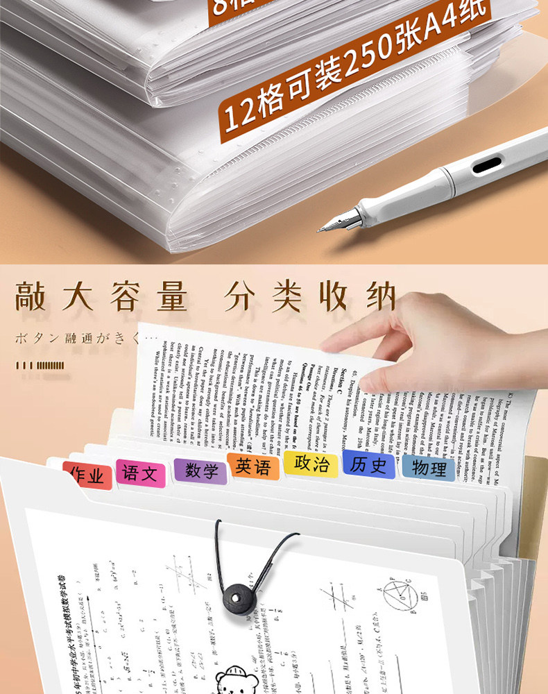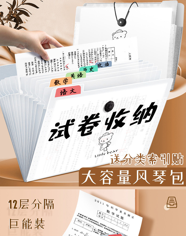Папка A4 для хранения тестовых бумаг, многоуровневая, специальная прозрачная вставка, аккордеон, большой объем, сумка для файлов для учеников начальной школы