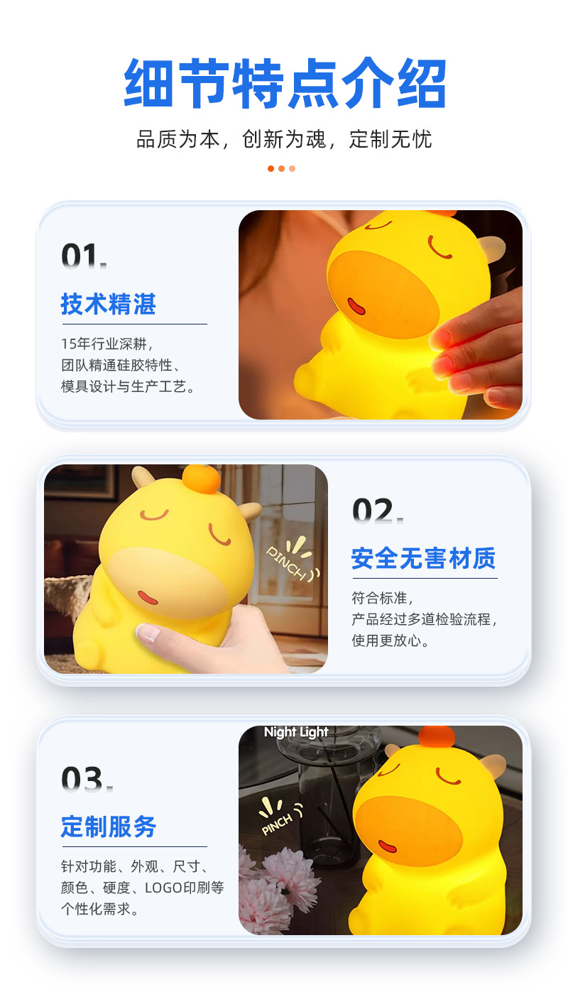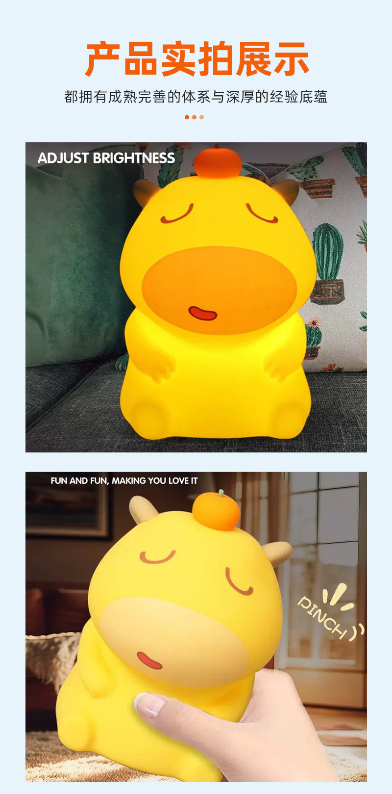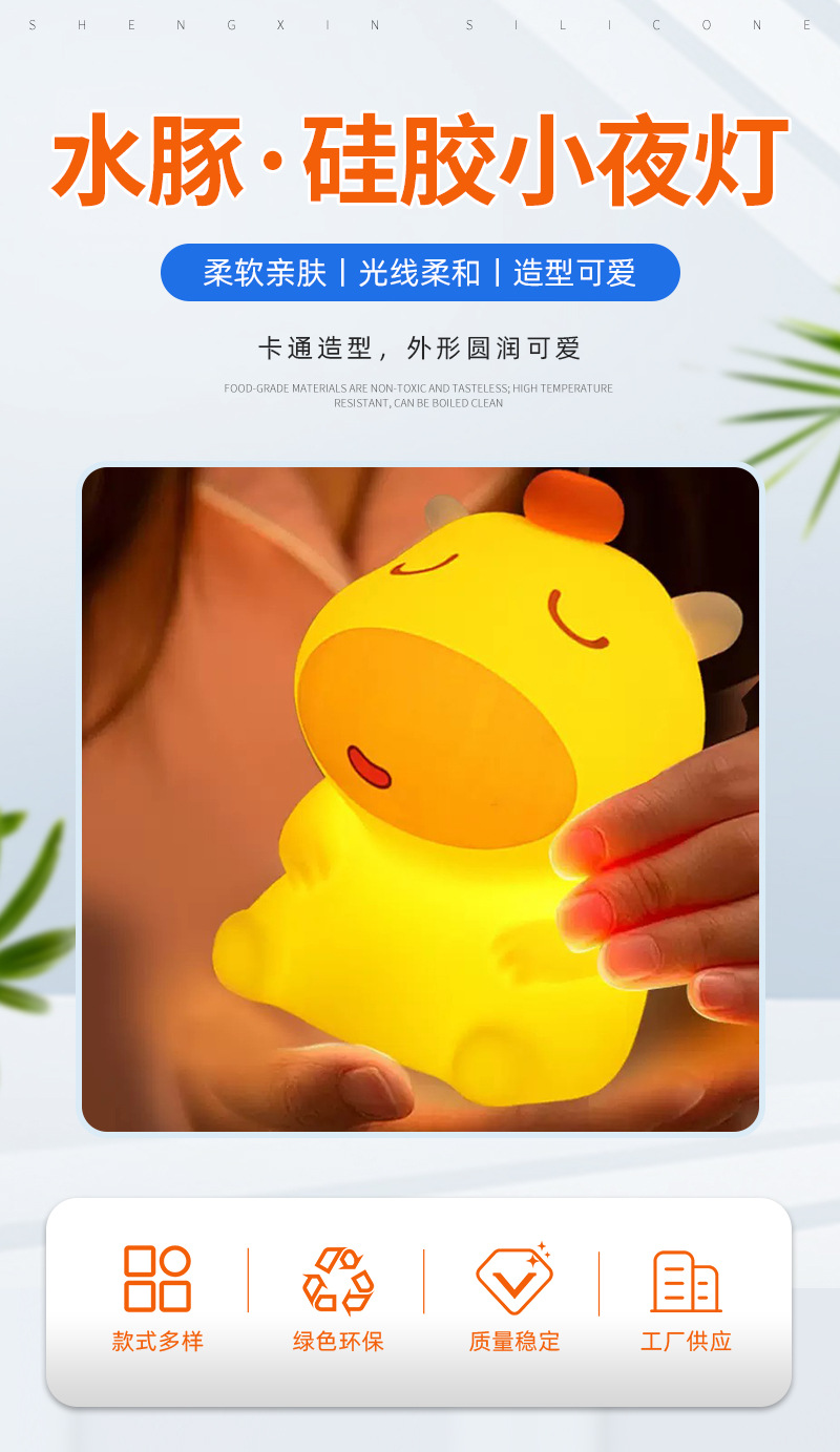 Производитель на заказ, силиконовая ночная лампа с мультяшным дизайном, капибара Лулу, светильник для детей