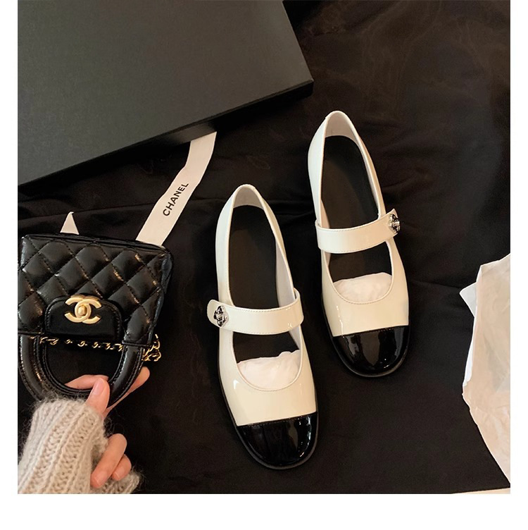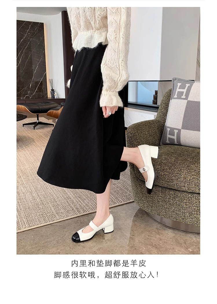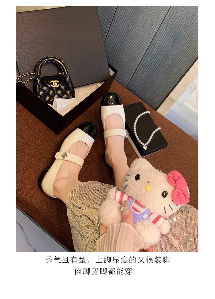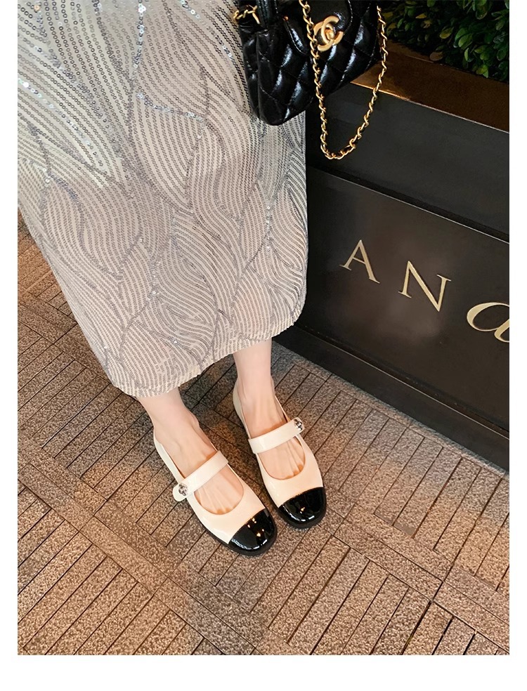Классические туфли Мэри Джейн с цветным блоком, 2025 новый стиль, мелкий носок, балетки из натуральной кожи с толстым каблуком
