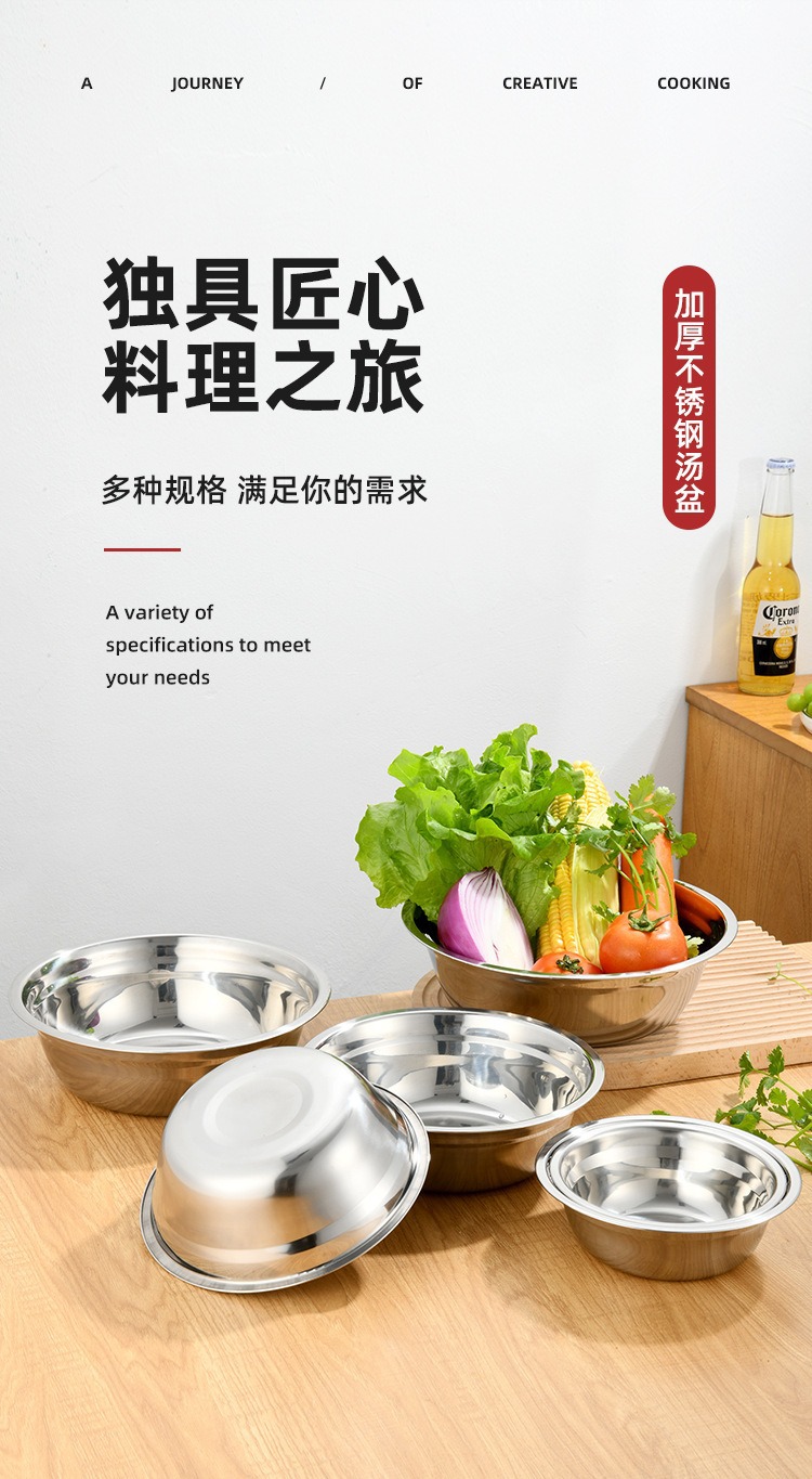 ![]() | 18cm | 304 food grade soup basin | ¥5.72 / ≈ 69 ₽ | 299998 | 6141498242509 | |
