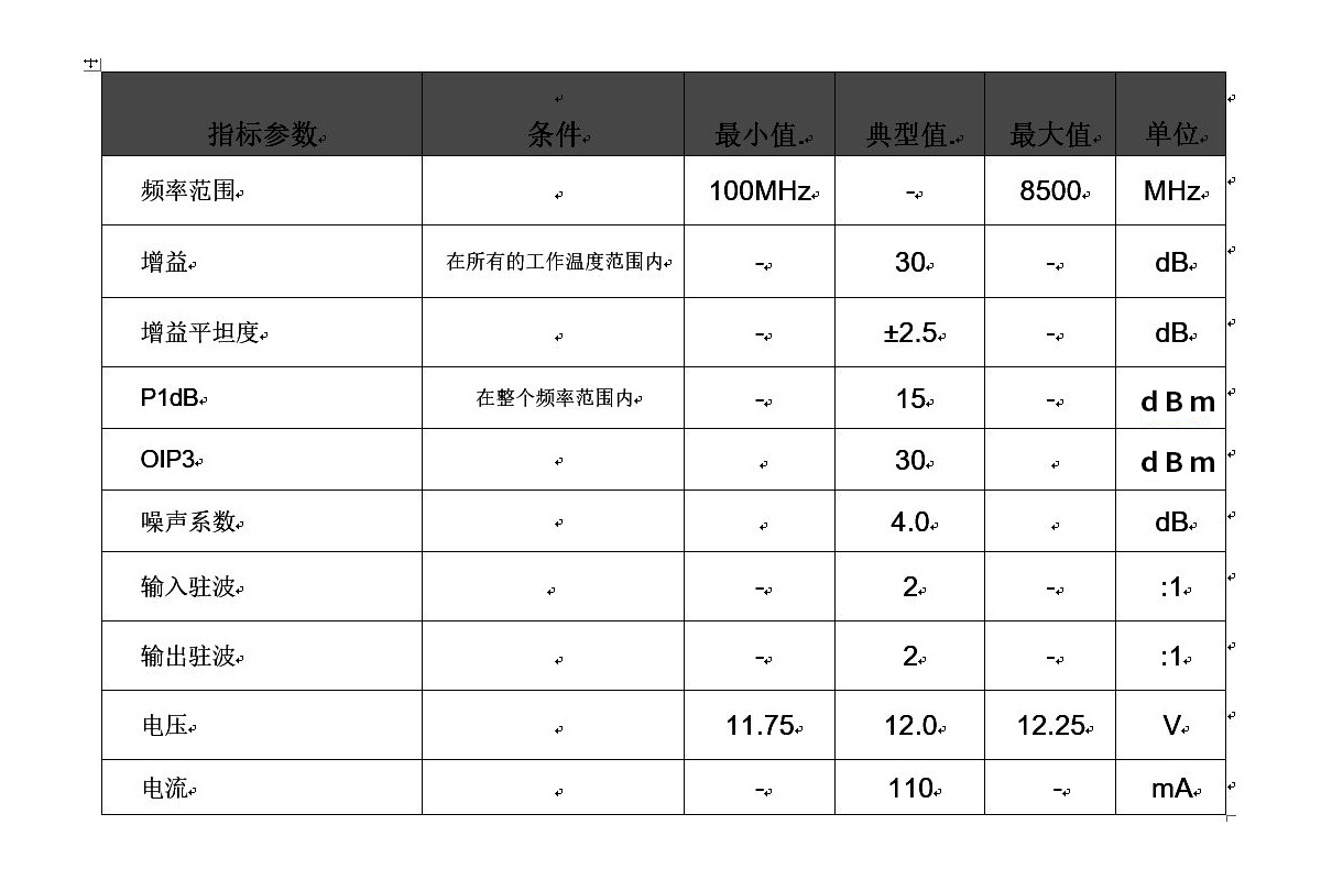 测试条件,室温 25℃,阻抗50Ω,+12V DC