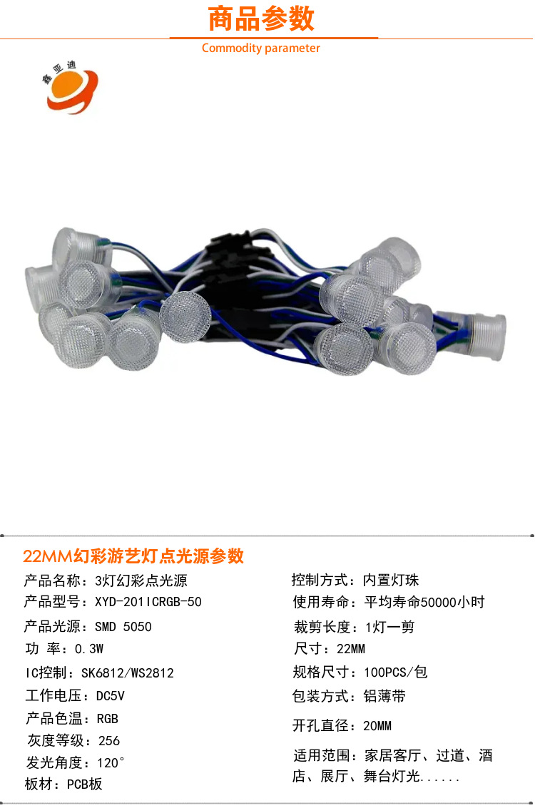 Ws2811/Ucs1903 светодиодный точечный источник света 20 мм прозрачный пиксельный свет 5V полный цвет RGB 20 мм рекламный свет