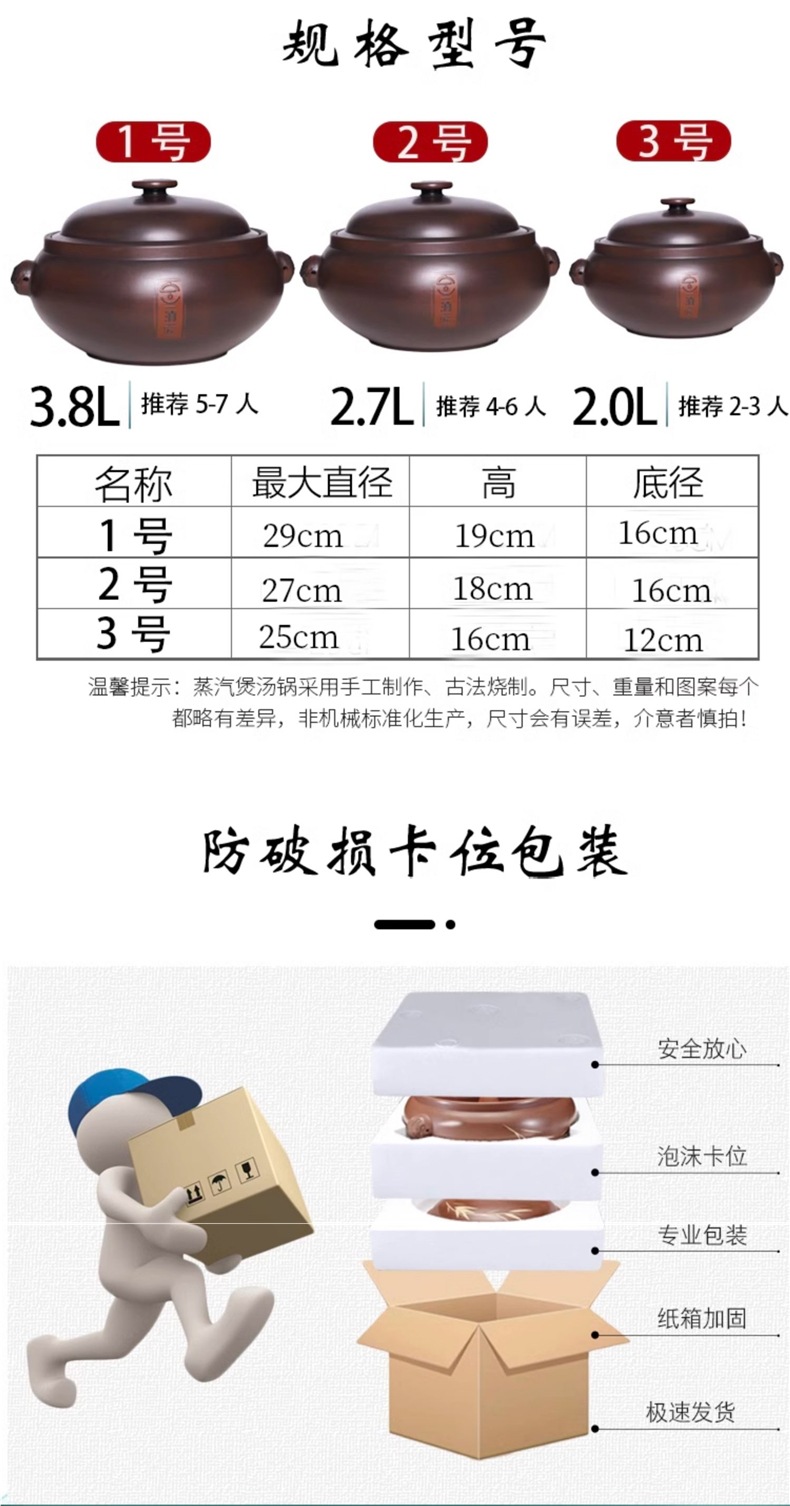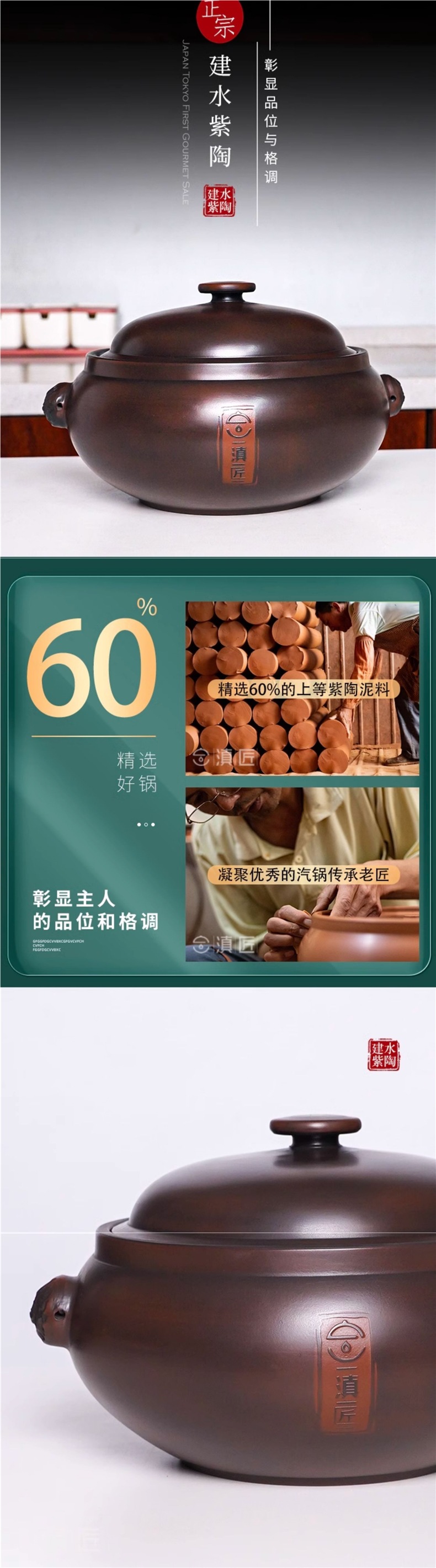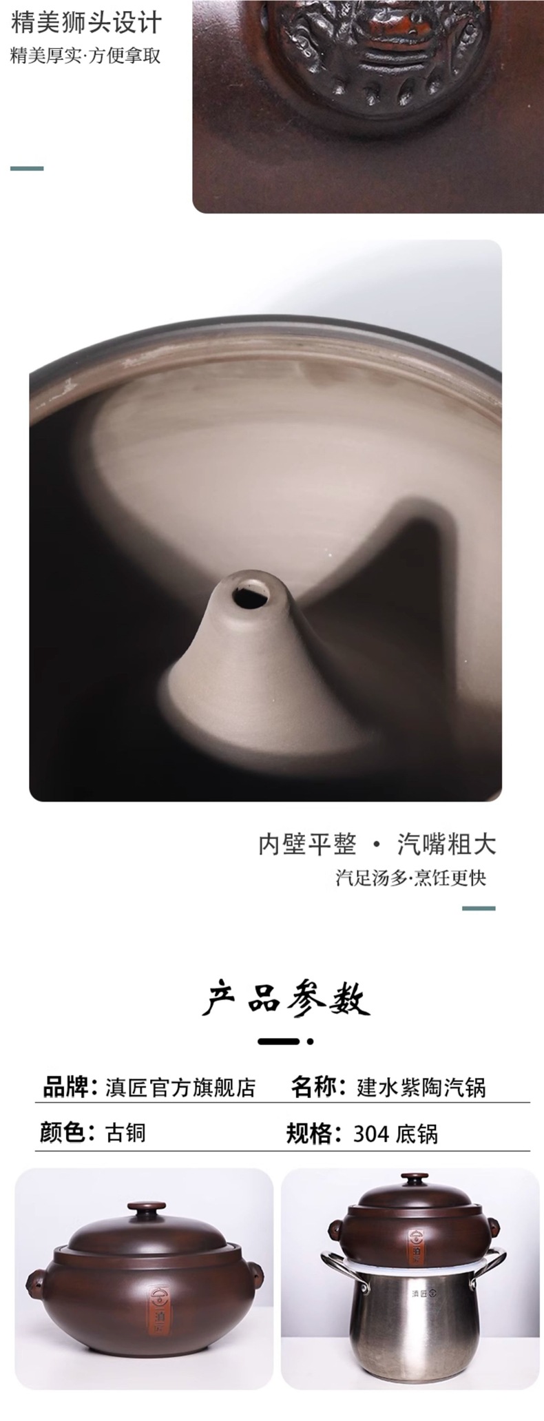 Оптовая продажа юньнаньского ремесленного флагмана, паровая кастрюля для курицы, бытовая пароварка, паровая кастрюля из фиолетовой глины Цзяньшуй для ночного потоотделения