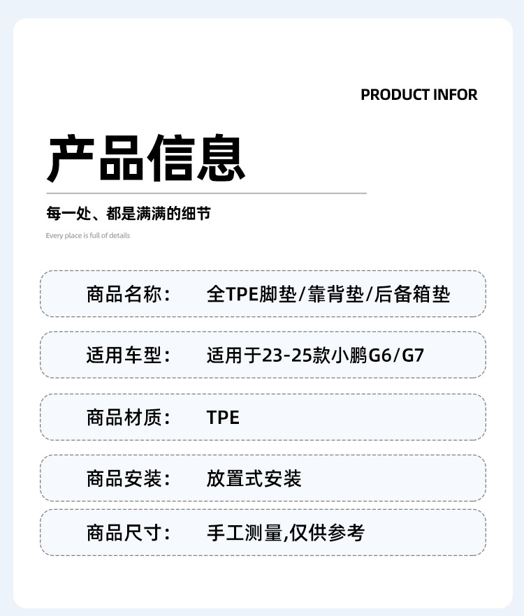 ![]() | 23-25 xiaopeng g6 trunk mat (open hole) | ¥114.0 / ≈ 1 375 ₽ | 9736 | 6139154443652 | |