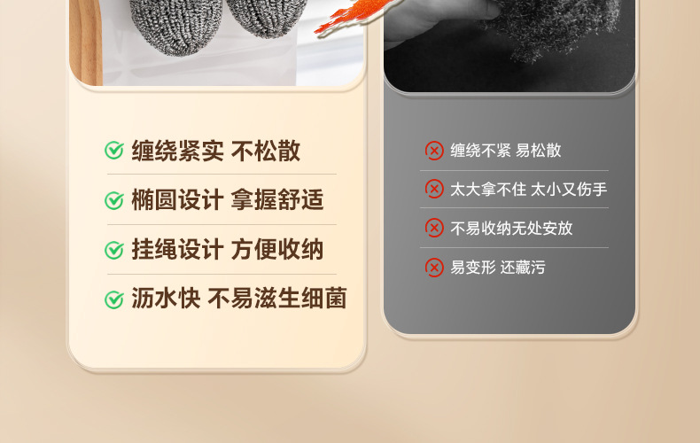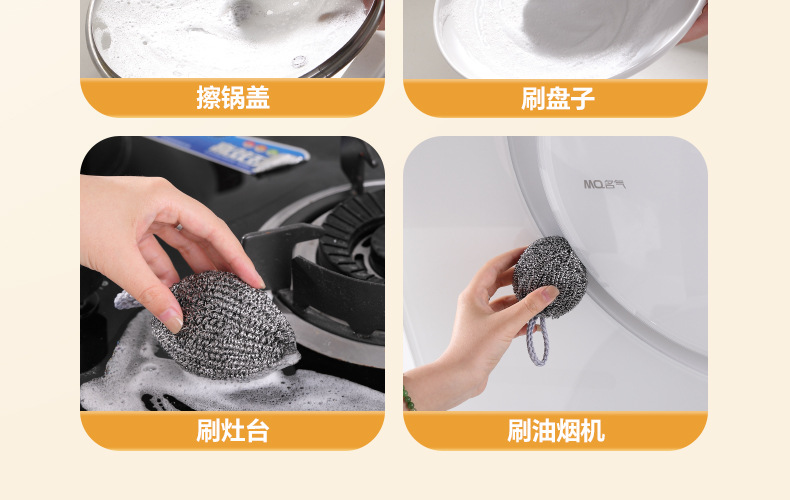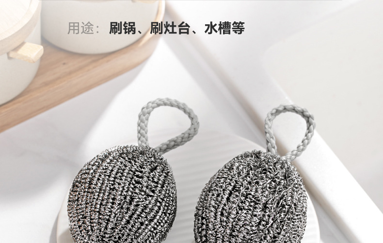 Стальная чистящая шарик с висячей веревкой для домашнего использования, Чистка кастрюль, Не ржавеет, Неосыпающийся проволочный шарик