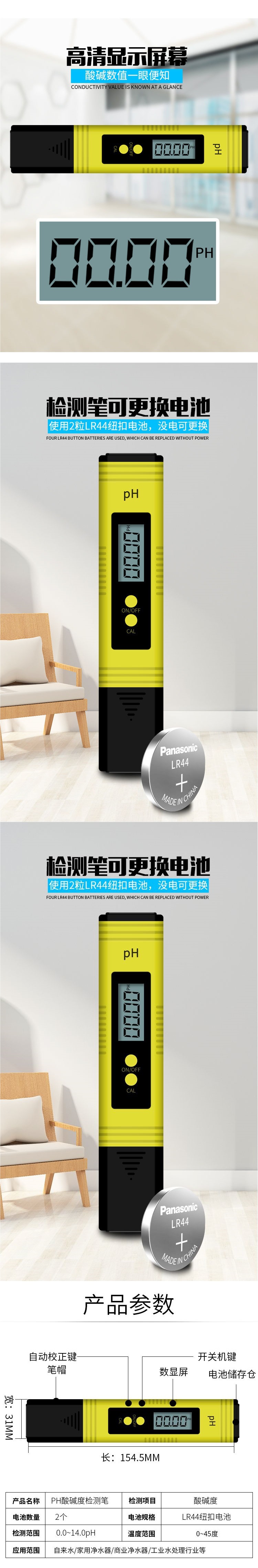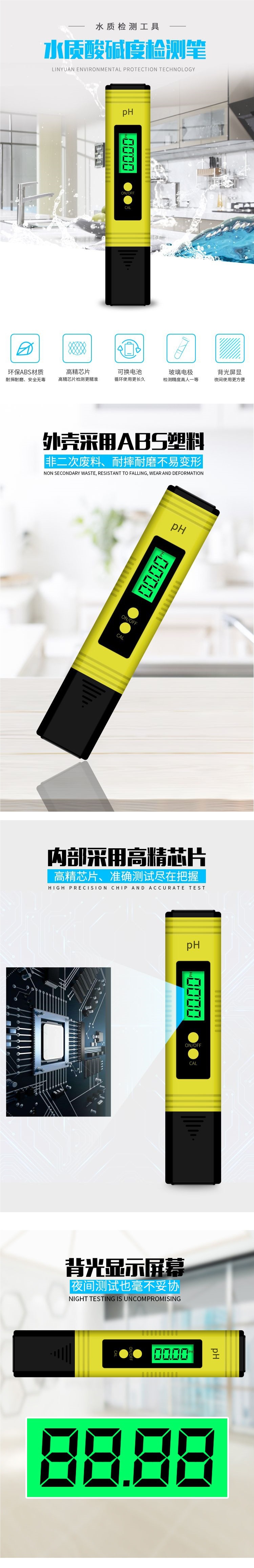 Портативный высокоточный измеритель кислотности pH, мониторинговый прибор, тестовый инструмент для проверки качества воды, ручка для измерения pH